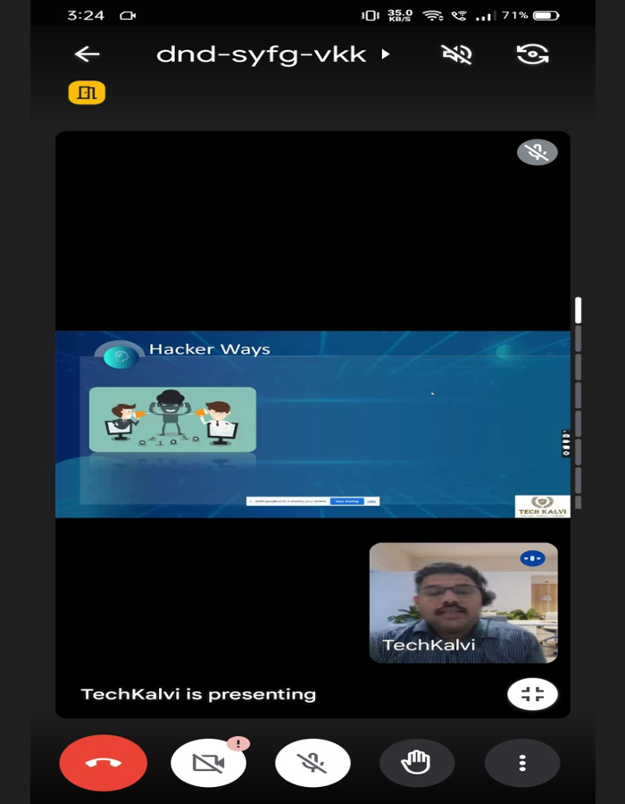 A one day Guest Lecture titled “Ethical Hacking ” was organized by the department of Electronics and communication Engineering in association with The Institution of Electronics and Telecommunication Engineers (IETE) and Electronics Club, Paavai Engineering College (Autonomous) on 19/09/23 Ms.P.Aasha Third year student welcomed the gathering. Dr.M.Sudha HOD, ECE convened the program and Mrs.A.Samudeeswari ASP, ECE delivered the welcome address. Mr.S.Srithar third year student Introduced the speaker.