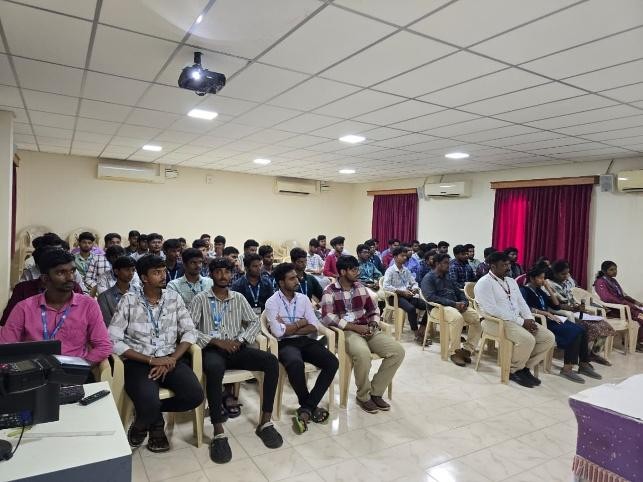 The event was well-organized with active involvement from the student volunteers. Mr. Keerthivasan served as the Master of Ceremonies, Ms. P. J. Abhinaya welcomed the gathering, Ms. S. Rithikasri introduced the Chief Guest, Ms. R. Vasihnavi delivered the Welcome Address, and the Vote of Thanks was proposed by Ms. Sanjeetha.