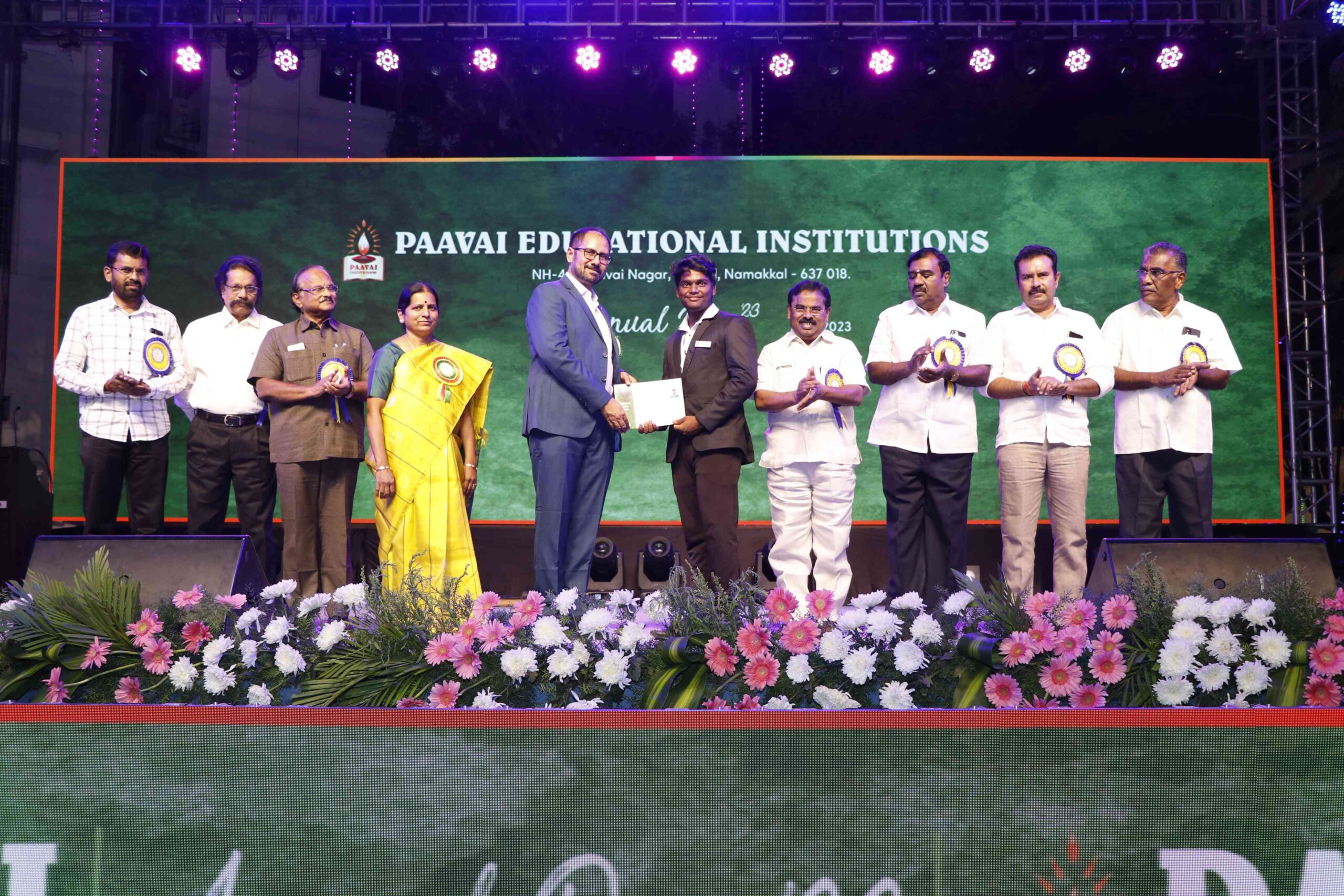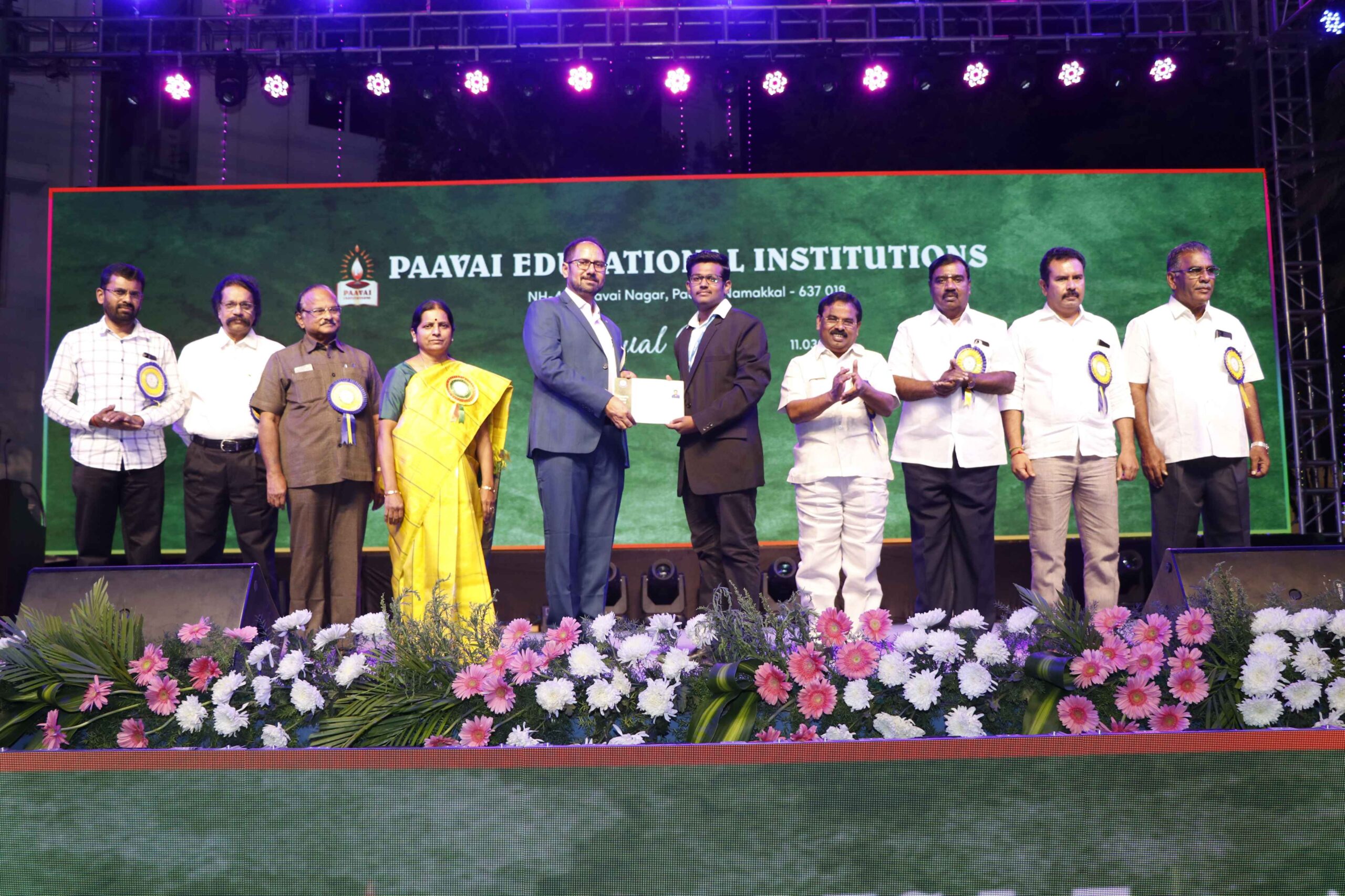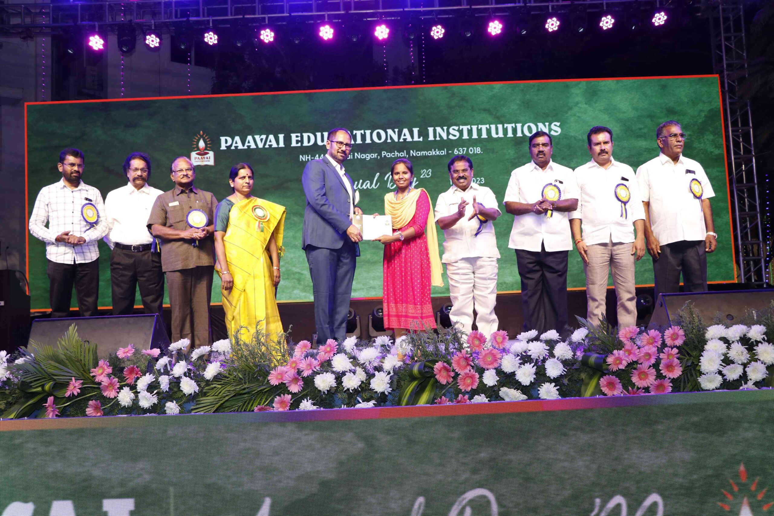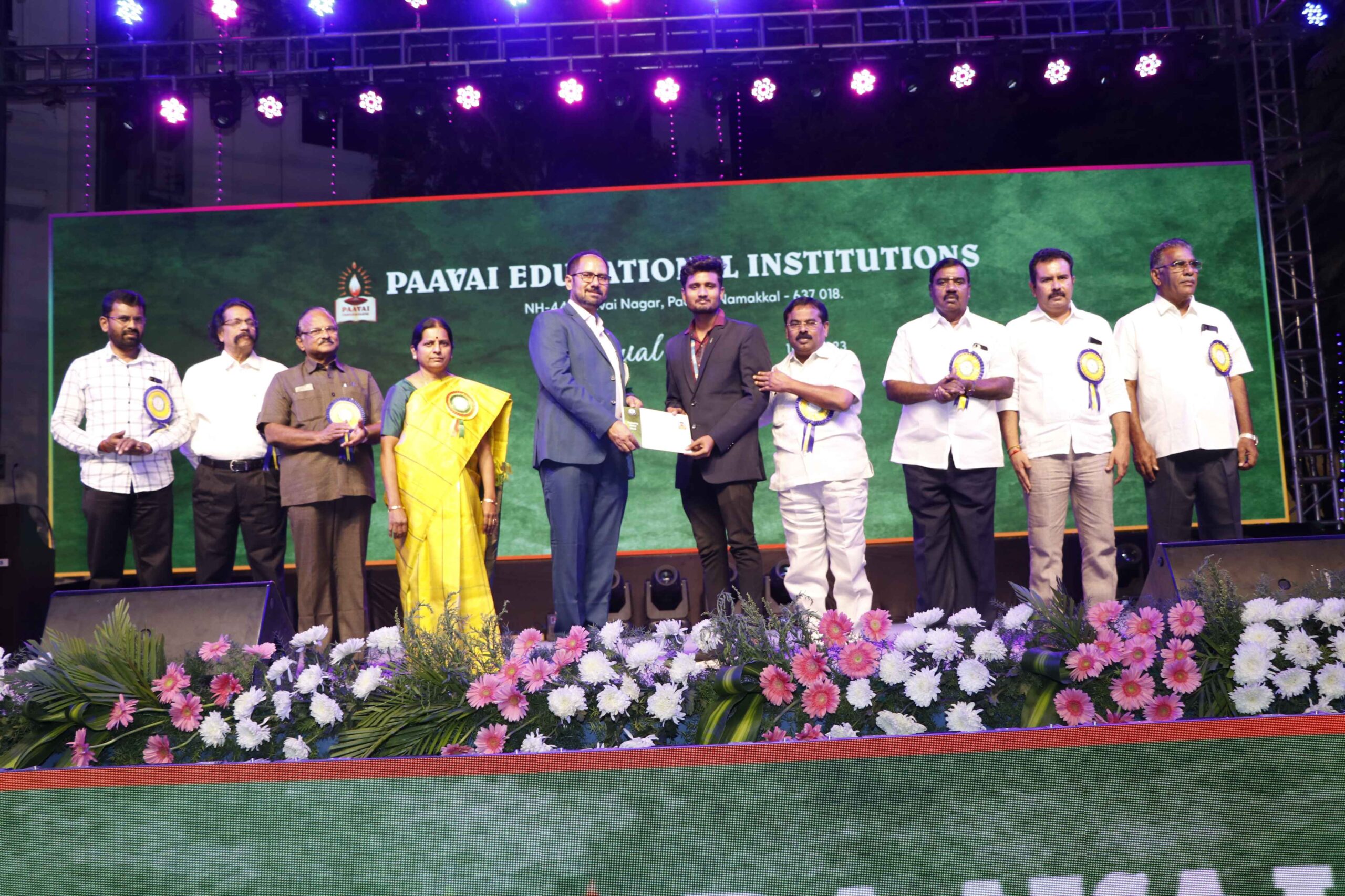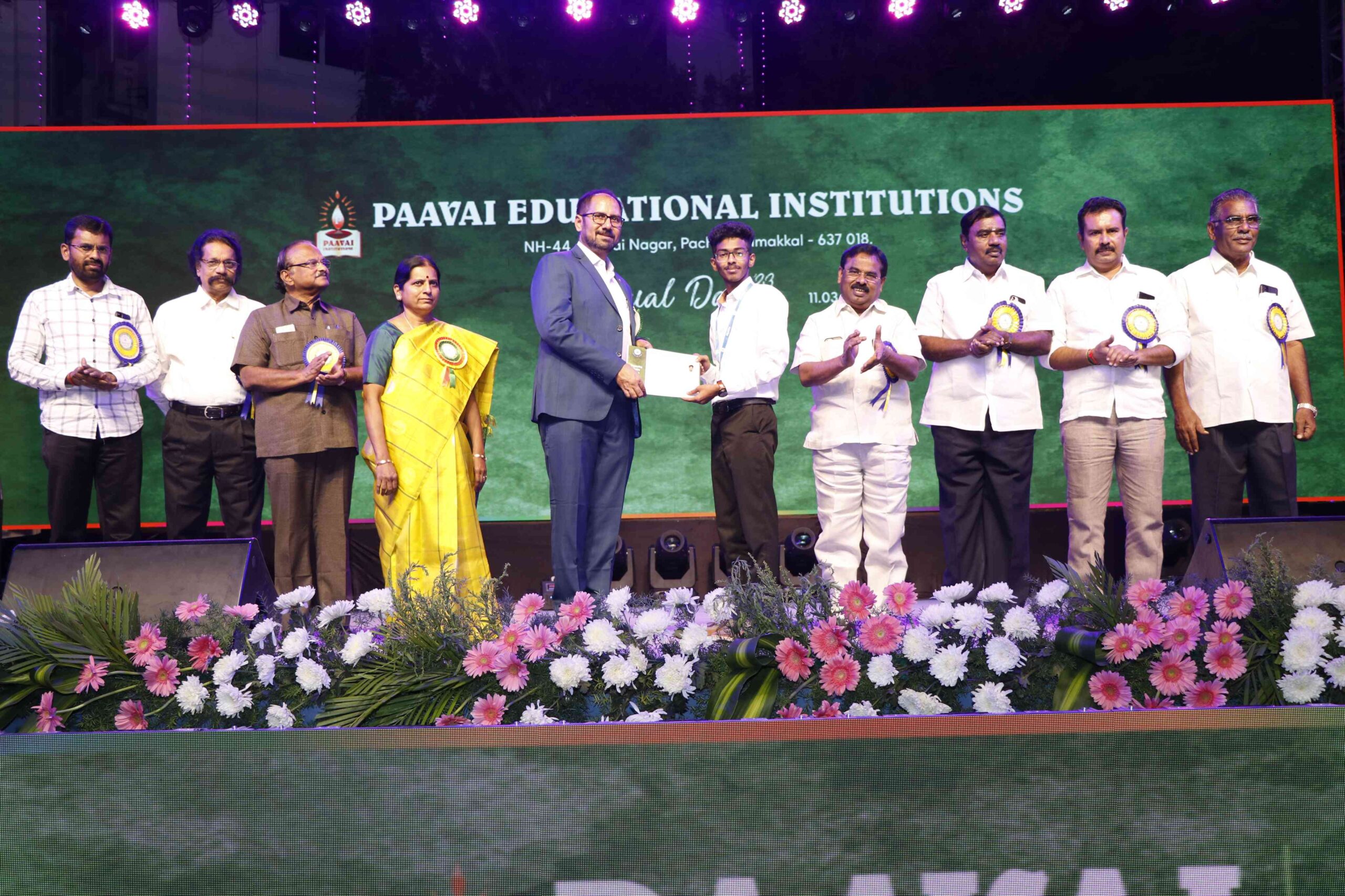 Forty-five variegated cultural events were performed by the students that ornamented the annual day and it was indeed a professional show that captivated the eyes of many. The best outgoing students of various departments of all Paavai Institutions were awarded. The Vote of thanks was proposed by Smt.Mangai Natarajan, Correspondent, Paavai Institutions. The Vice-Chairman, Secretary, Treasurer, Joint Secretary, Directors of Paavai Institutions, Deans, Principals, Special invites, Professors, parents, and students graced the occasion.