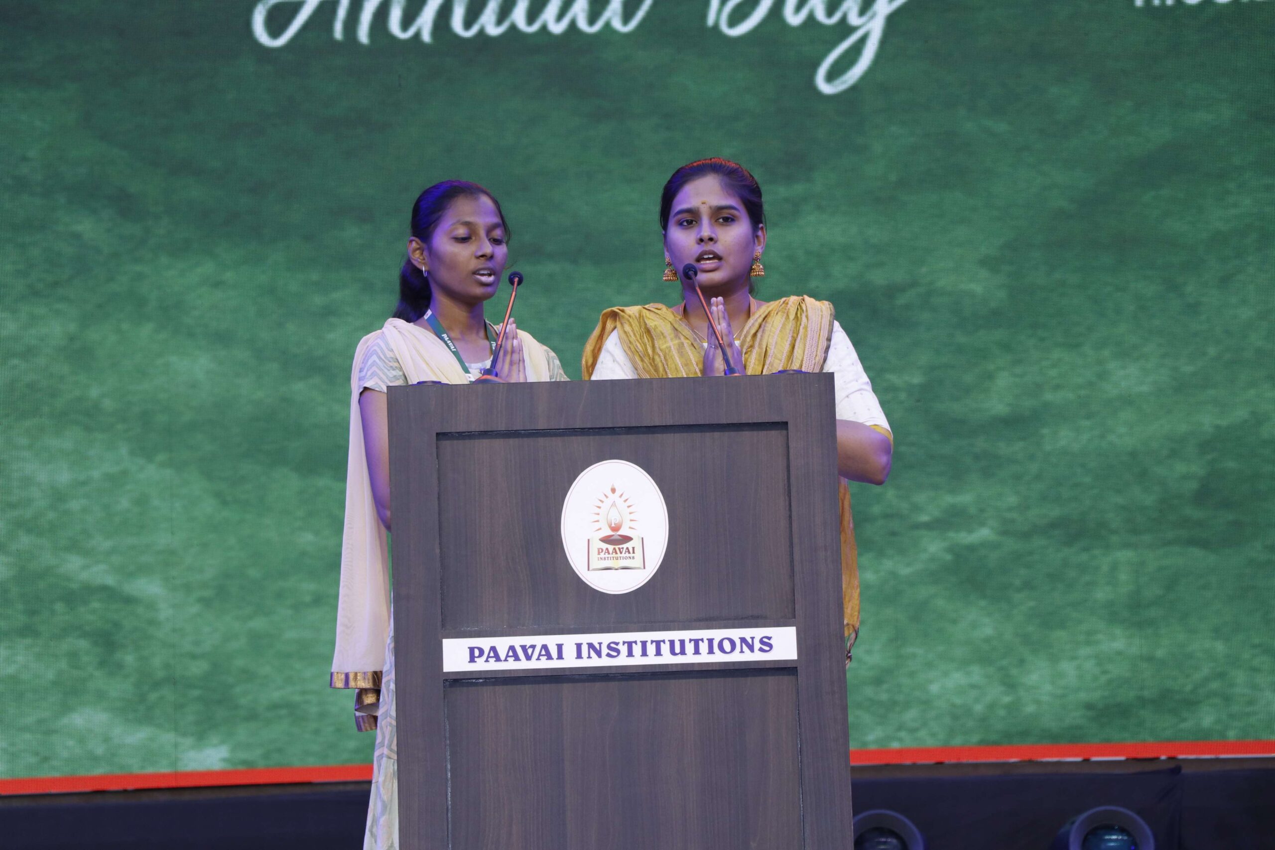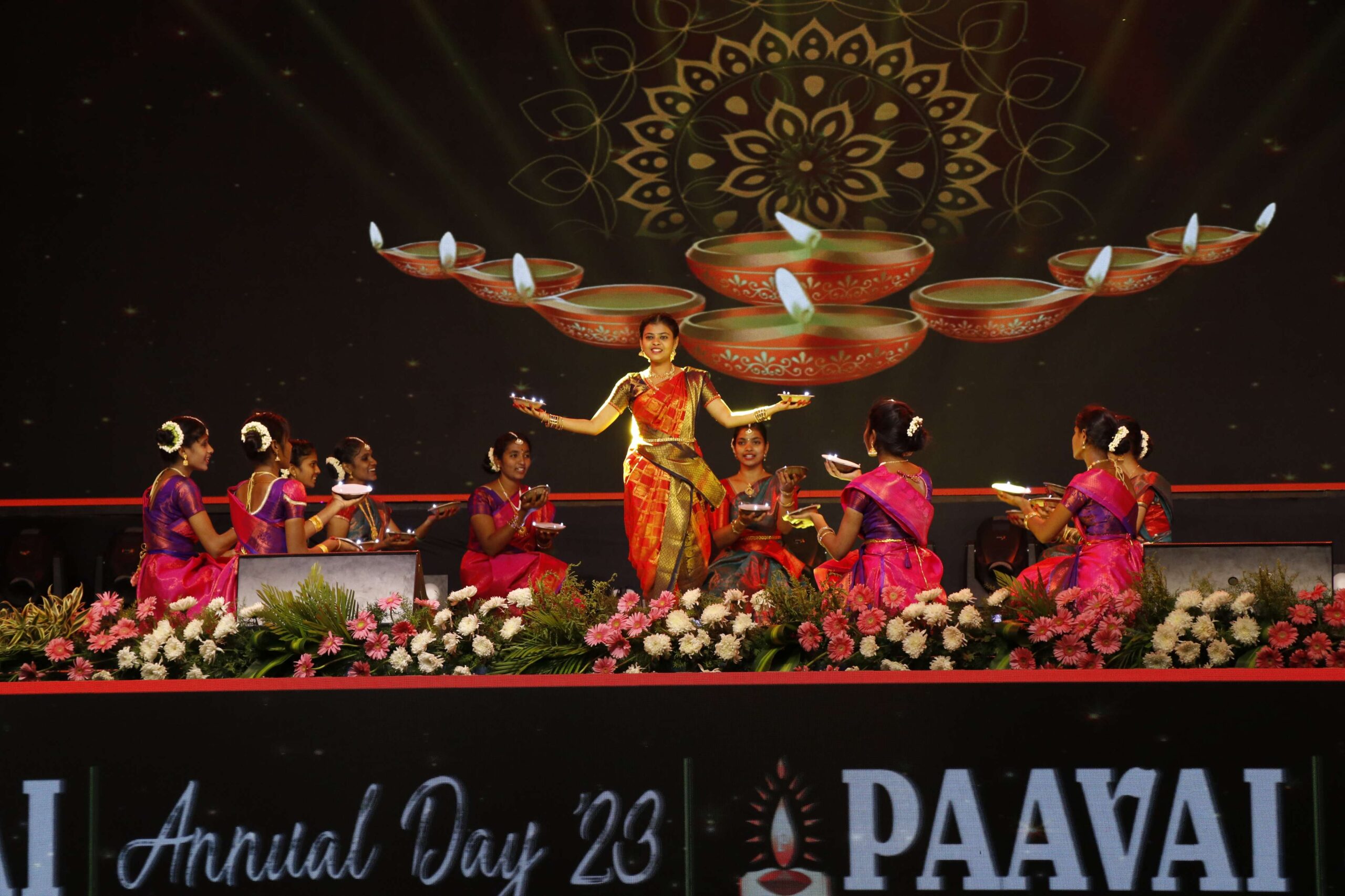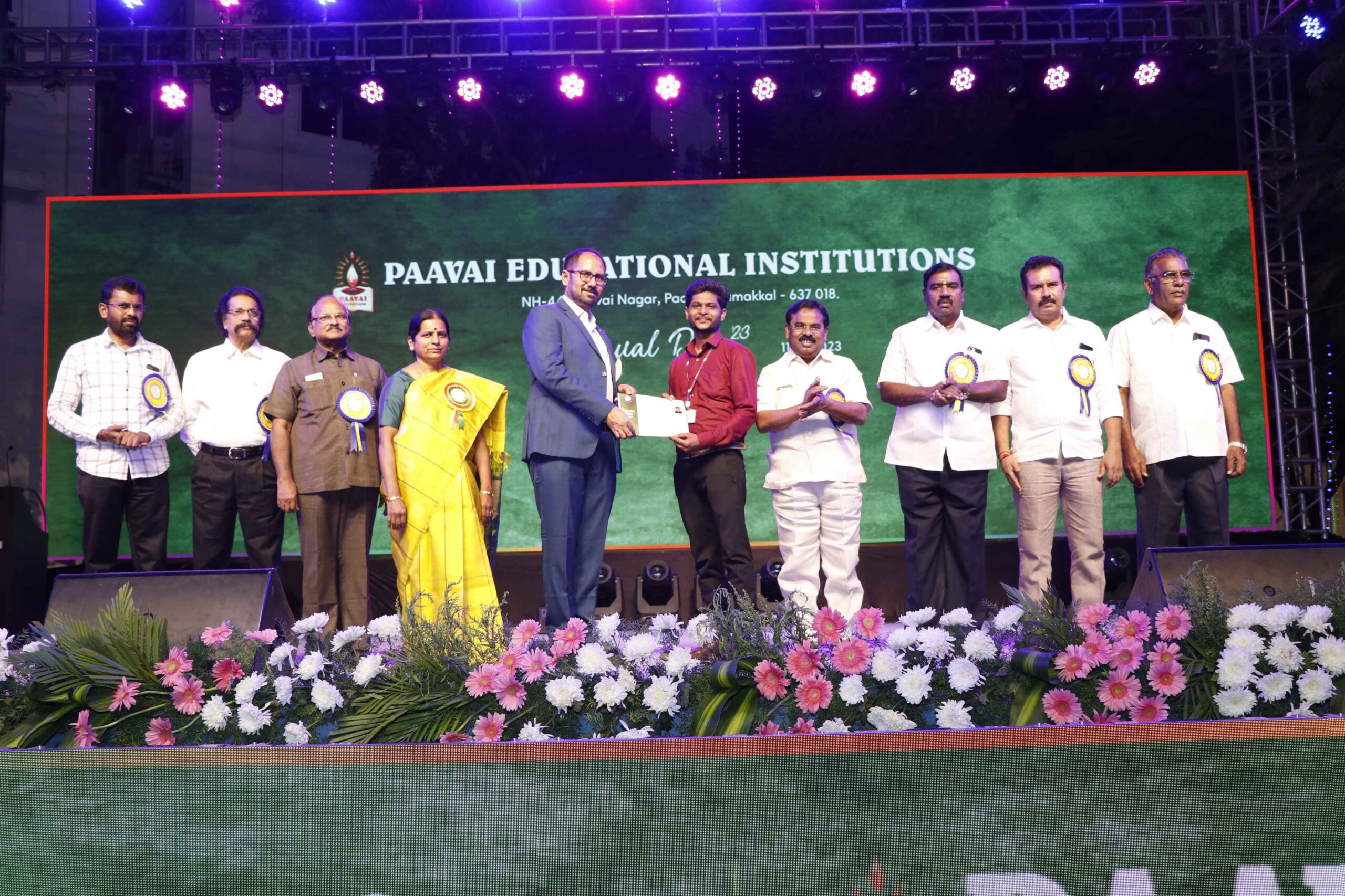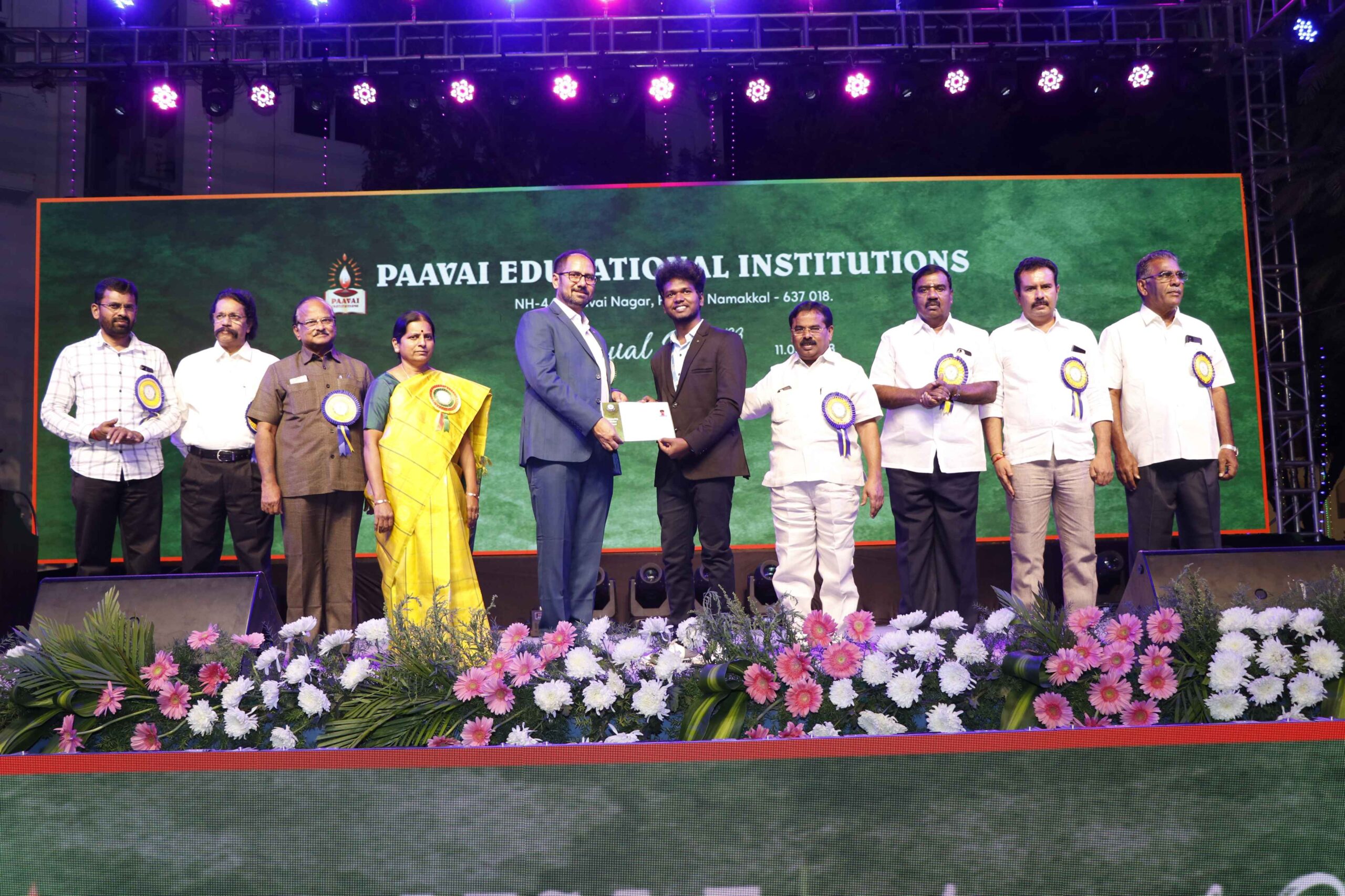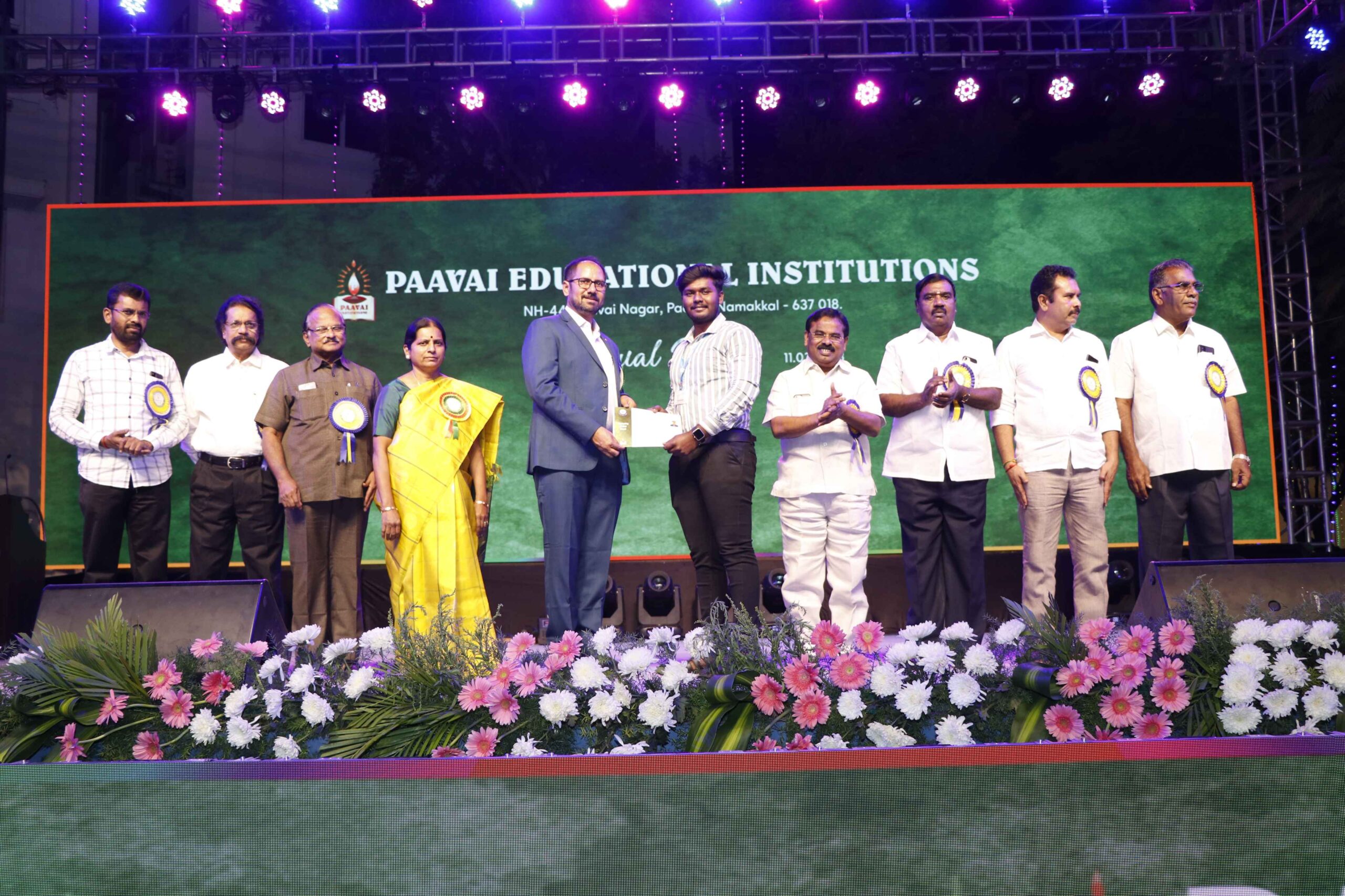 Forty-five variegated cultural events were performed by the students that ornamented the annual day and it was indeed a professional show that captivated the eyes of many. The best outgoing students of various departments of all Paavai Institutions were awarded. The Vote of thanks was proposed by Smt.Mangai Natarajan, Correspondent, Paavai Institutions. The Vice-Chairman, Secretary, Treasurer, Joint Secretary, Directors of Paavai Institutions, Deans, Principals, Special invites, Professors, parents, and students graced the occasion.
