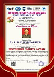 | 1 | Dr.D.R.P Rajarathnam | MCT | Best Senior Faculty Award | 05.09.23 Novel Research Academy-Puducherry | View |