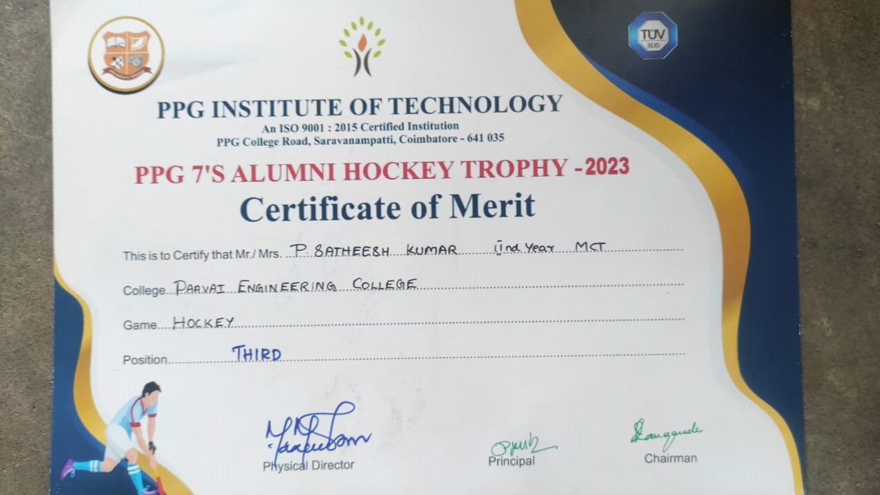| 9 | Satheeshkumar II MCT | 3rd prize in Hockey state level | At State/PPG Institute Of Technology | View | |