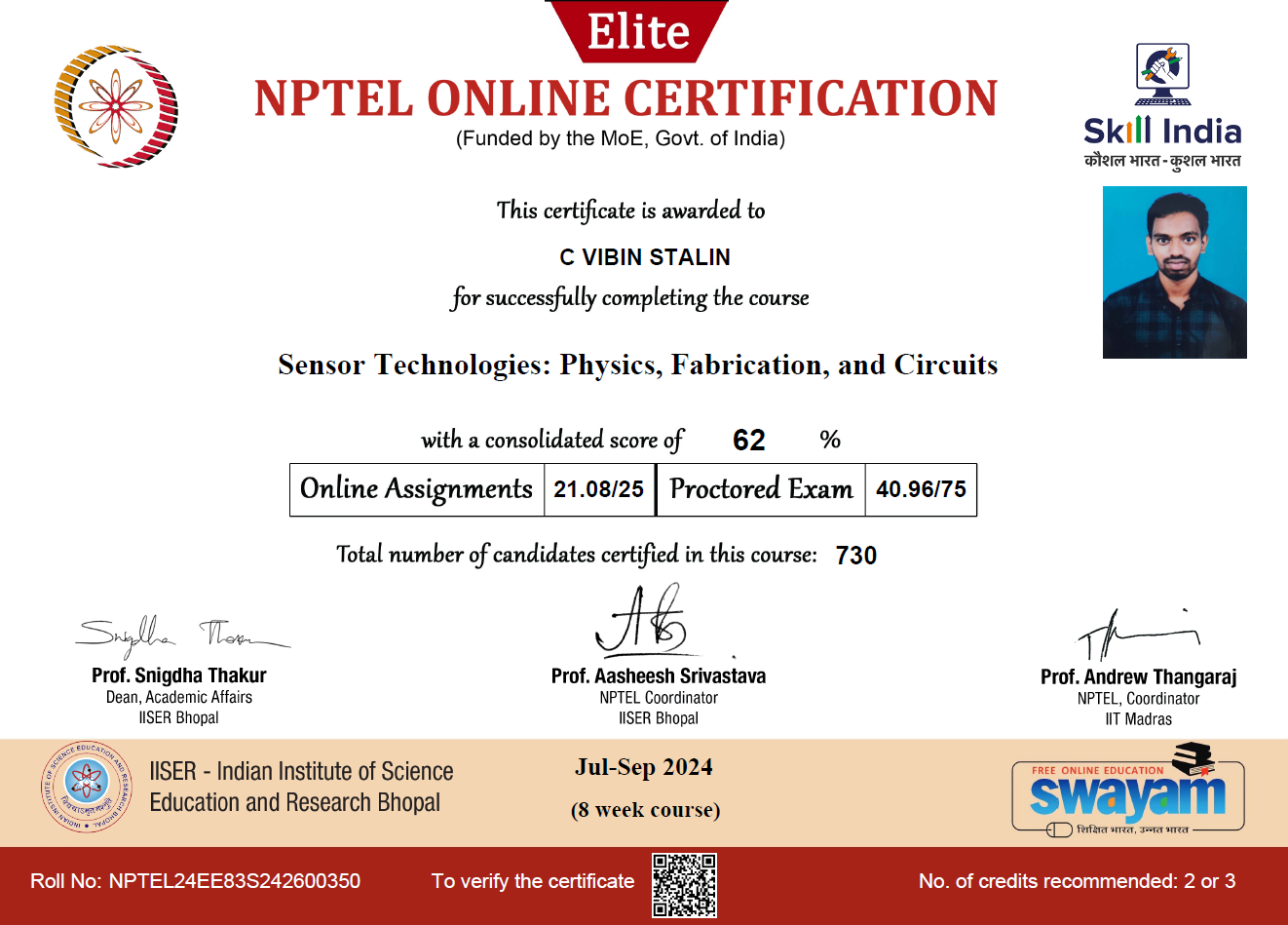 | C.Vibin Stalin | Shanmuga Technologies | Non-Government | 0.6 | 3 months |