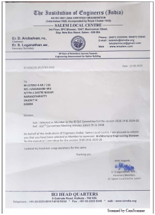 J.UmanambiThe Institution of Engineers, Salem Local CentreSelected as Member to Represent “Architectural Engineering Division”for the Executive Committee for the session 2018-2019View