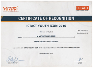 1Mr.M.VigneshkumarCivil EngineeringIVWon the title ICTACT YOUTH ICON 2016National Finale of ICTACT Youth Present 201View