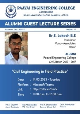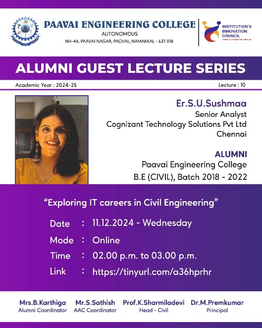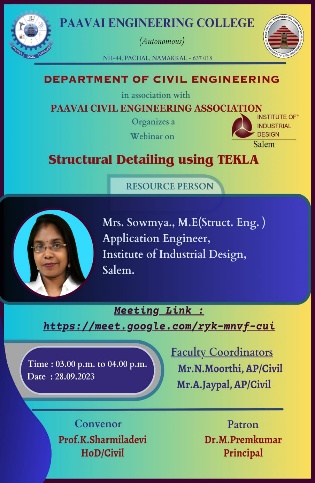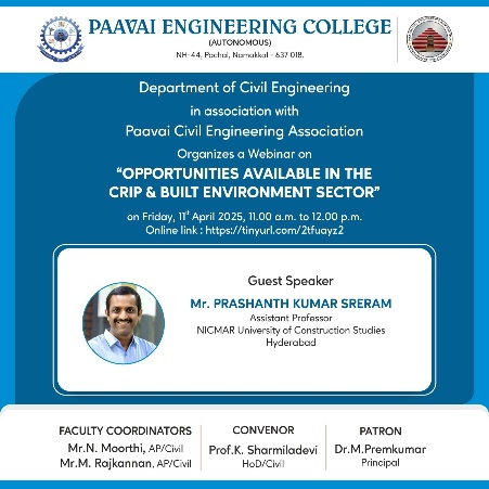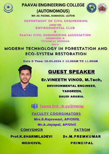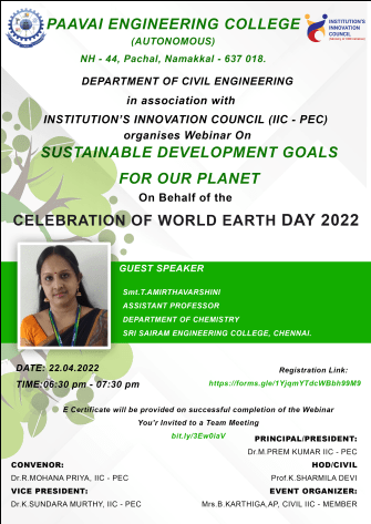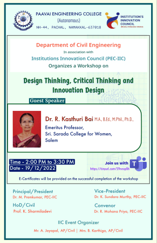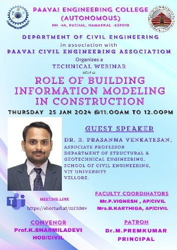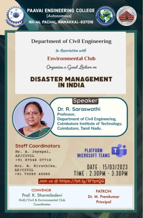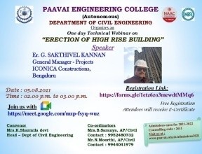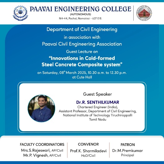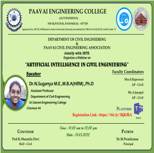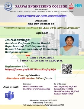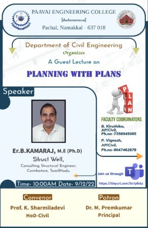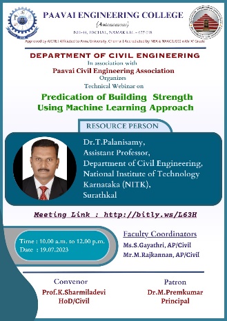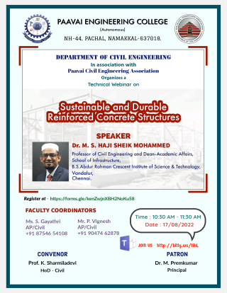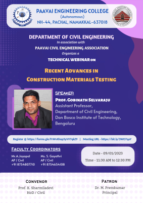 Prof.K. Sharmiladevi, Associate Professor & Head, Department of Civil Engineering, Paavai Engineering College, Pachal, Namakkal, Tamilnadu.