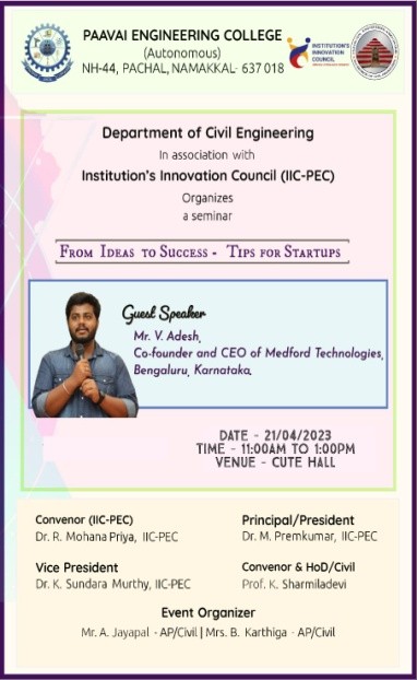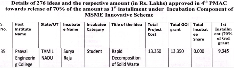 Civil EngineeringIVReceived grant of Rs.13.35 lakhs for the project Rapid Decomposition of Solid wasteGrant Received Under MSME 2.O Innovative SchemeView