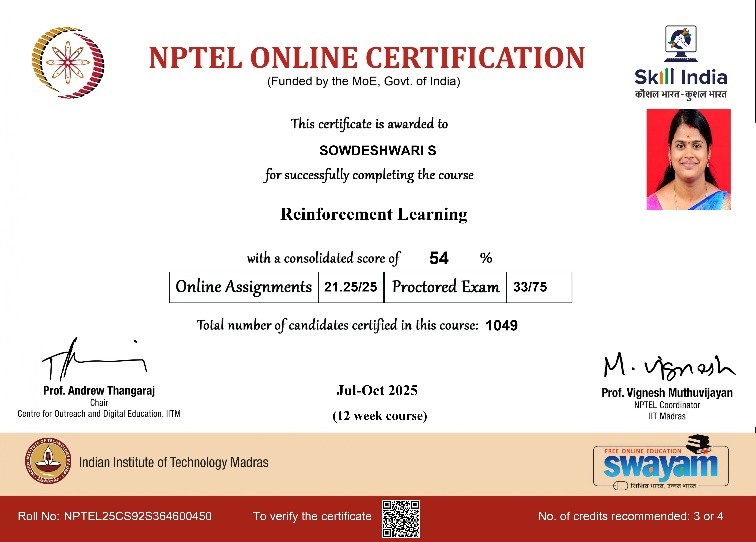 | 13 | Keerthika P | IV | Global Navigation Satellite Systems and Applications | Completed |