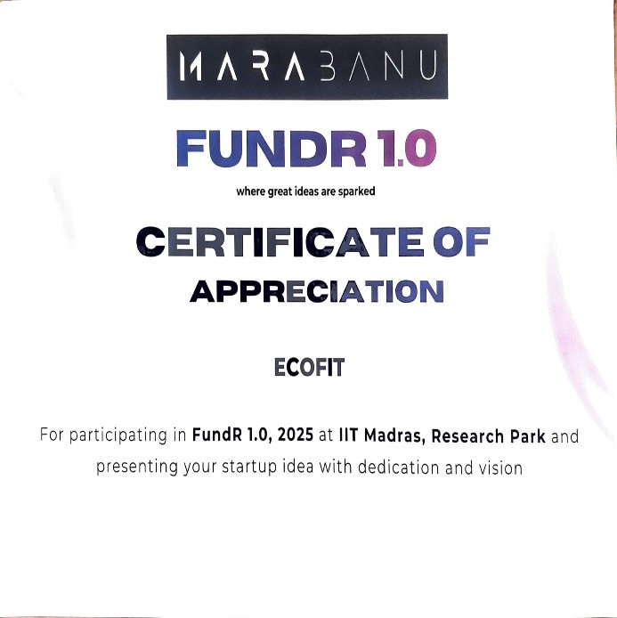 | 6. | M.Dhanush | IV/Civil | Presented our startup ECOFIT – BIO MANURE product in “MARABANU 1.0 lakh funding ” Pitching contest | IIT Research Park, Chennai | View |