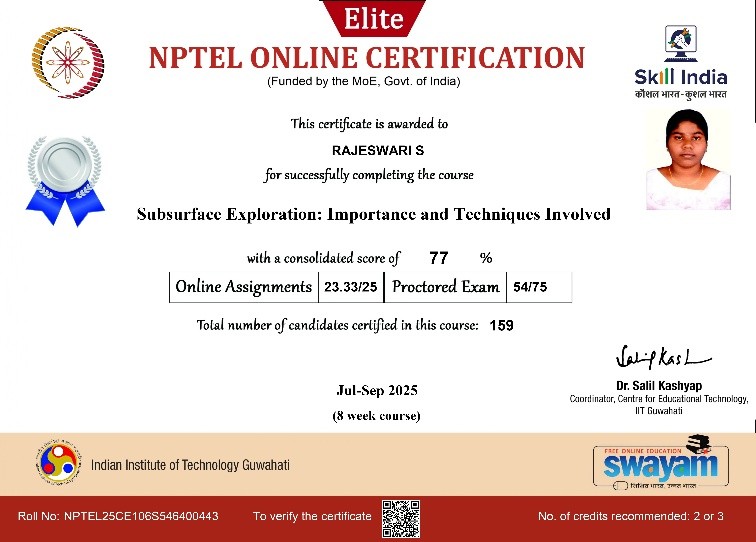 | 3. | R.Sasikala | III/Civil | Successfully completed | Jul – Oct 2025 (12 Weeks course) | View |