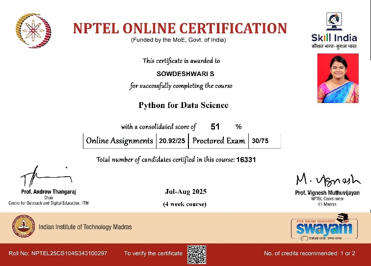 | 2. | S.Sriram | II/Civil | Successfully completed | Jul – Oct 2025 (12 Weeks course) | View |