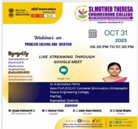 - Organising Workshops, Seminars, Webinars, Guest lectures, Symposium, Project Contests, Entrepreneurship Programs and Conferences.