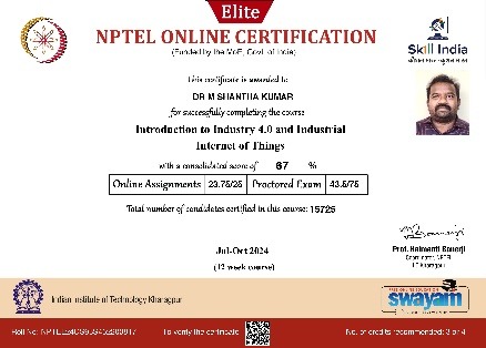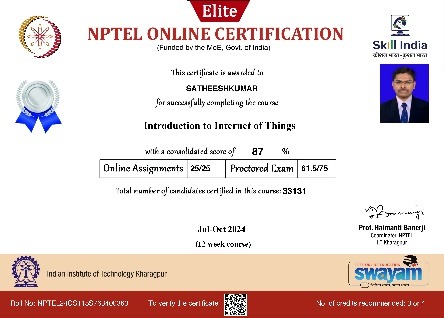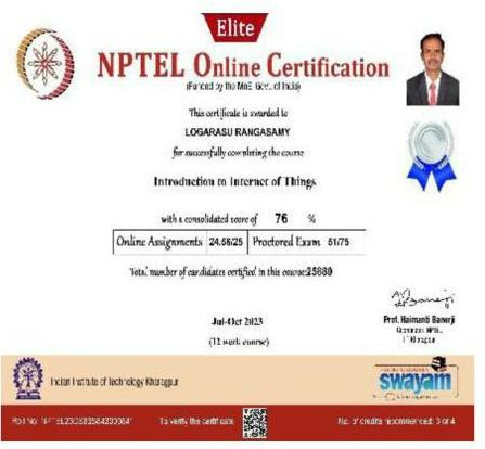 | 3 | P.Santhosh, IV Year | 202041006773A | Healthcare Monitoring And Controlling System Based On Combination of Sensors And Internet of Things(IoT) | Published | 2020 |