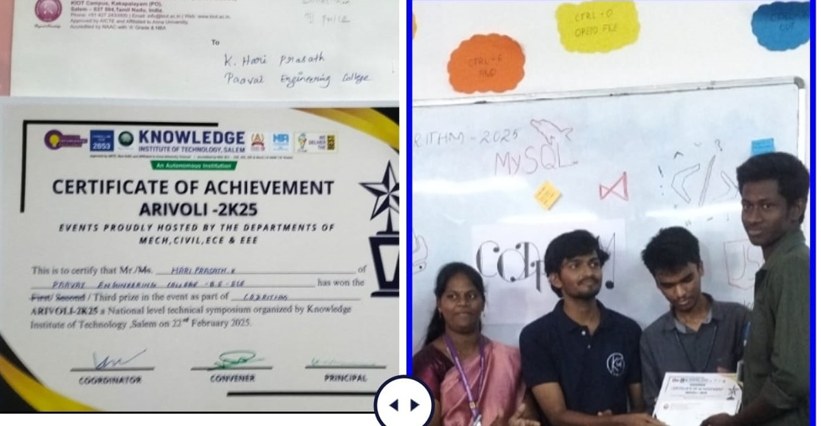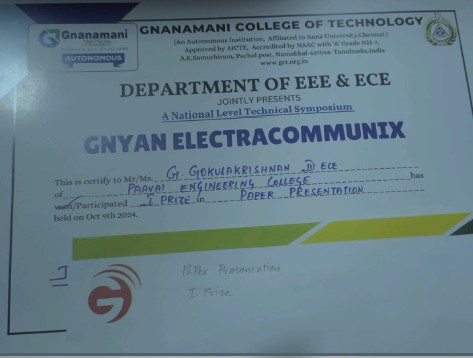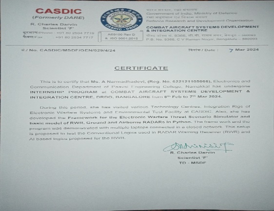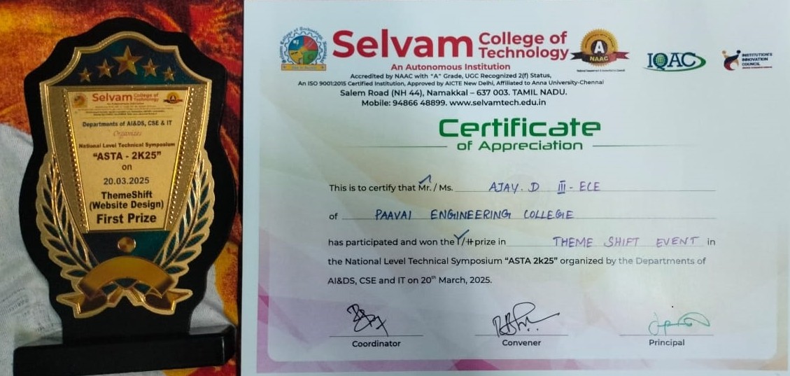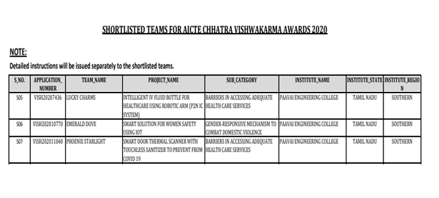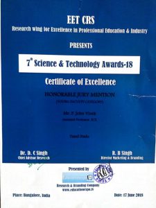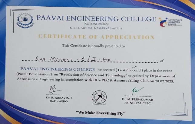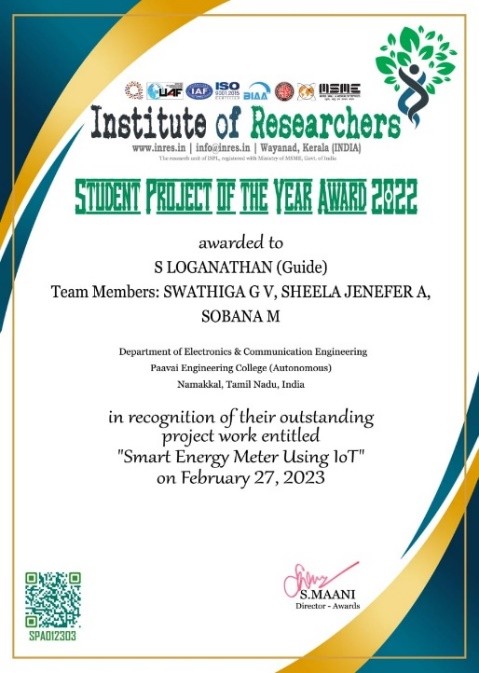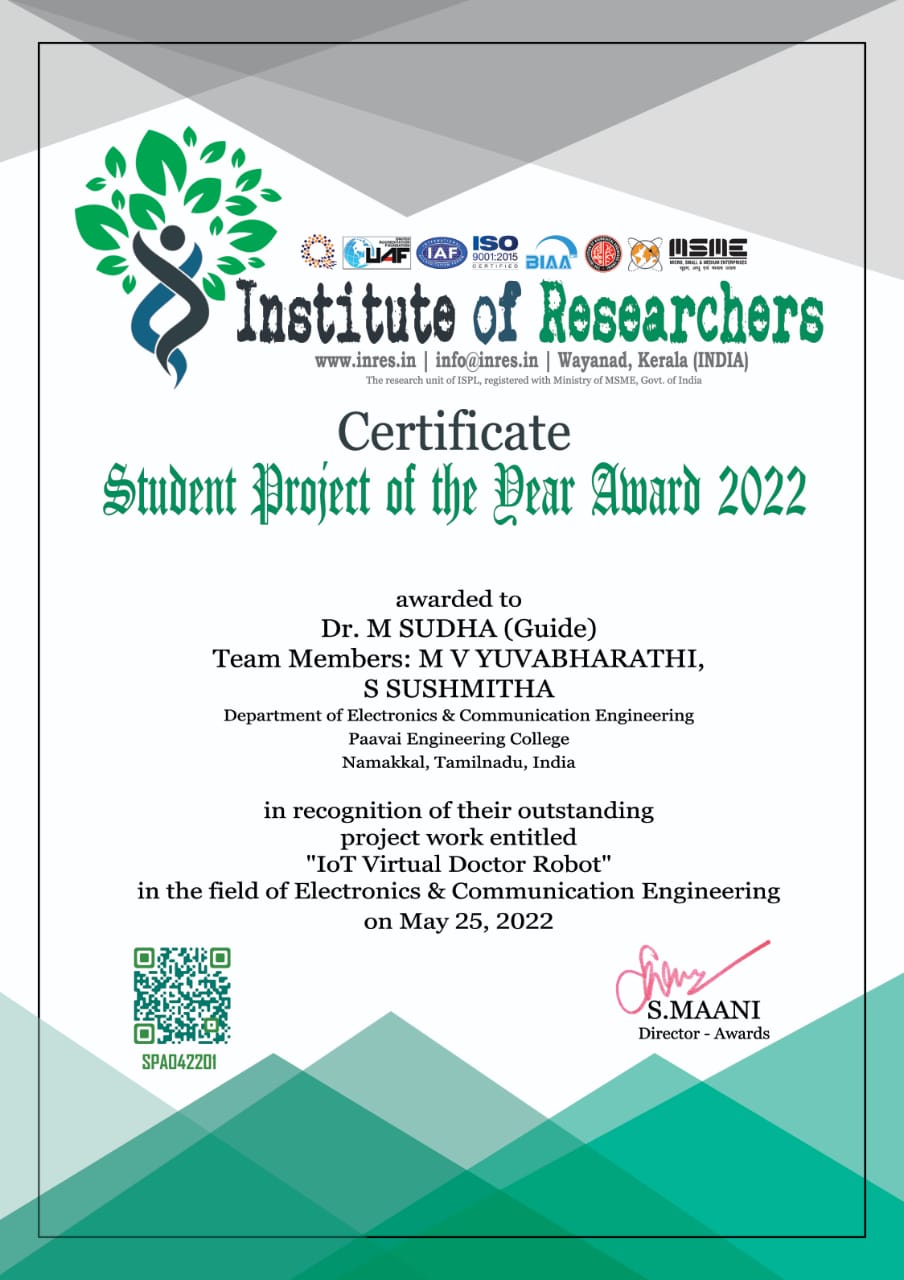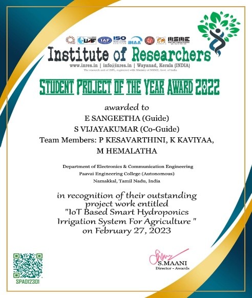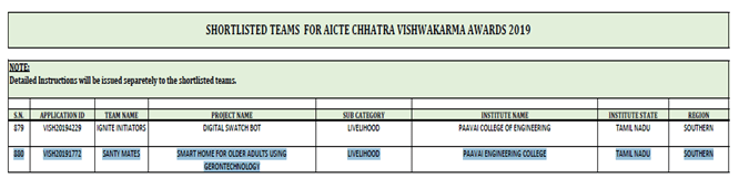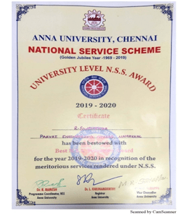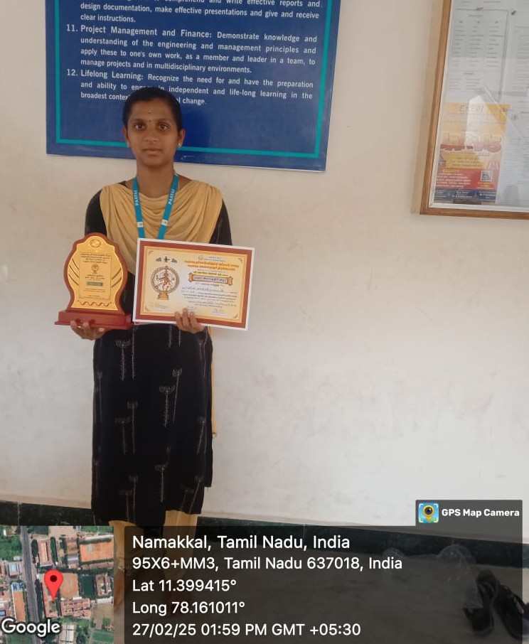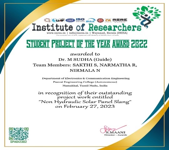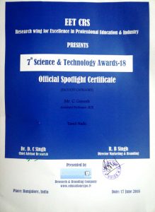 - Best student project awards – InSc, TNSCST, Viswakarma Awards(AICTE) and SIH.