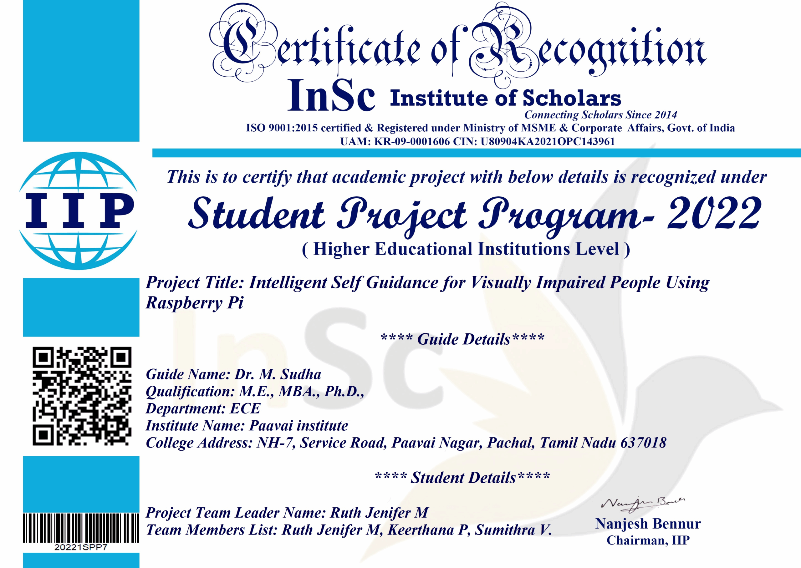 | 6 | Dr.S.Vijayakumar , S.Kumarganesh | Ascent Circuits Pvt. Ltd, Hosur | Non-government | 115,000.00 | 1 year |