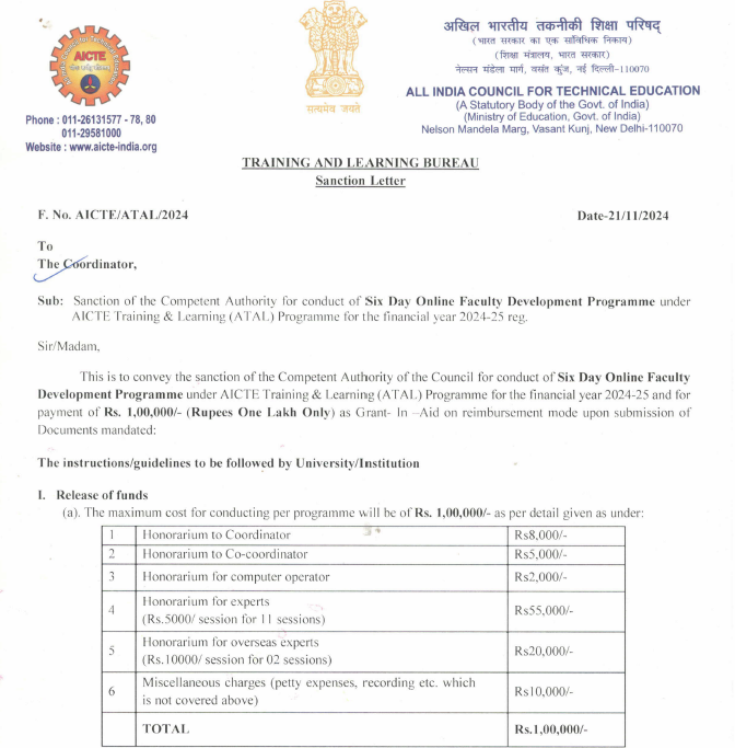 | 2 | Dr.S.Vijayakumar, Mrs.R.Bhuvaneshwari | ATAL, AICTE | Government | Rs.1,00,000 | 1 Week |