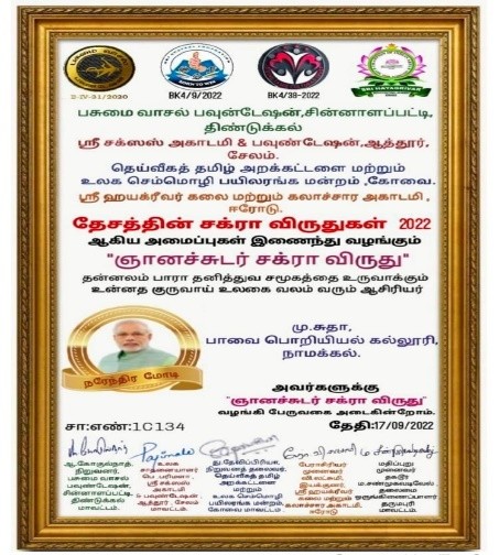 | 3 | S. Elango | SMN Poultry, Namakkal | Non-government | 21,000.00 | 2 Months |