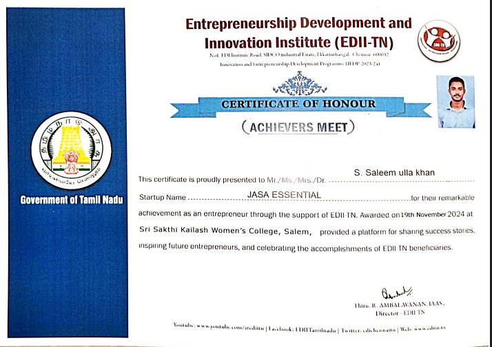 | 3 | P. Krishnasudha | GSP Fire safe, Namakkal | Non-government | 38,000.00 | 2 months |