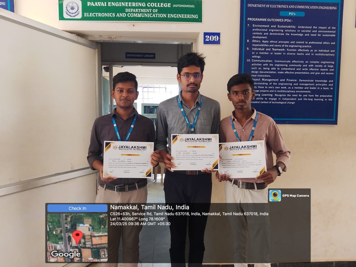 | PEO3 | Continuous Learning | To practice and demonstrate the ability to use the domain knowledge and expertise through periodic assignments, performances and projects to continuously prove the functionality of Electronics and Communication engineering learning in social and environmental aspects and to make allowances for further improvements. |
