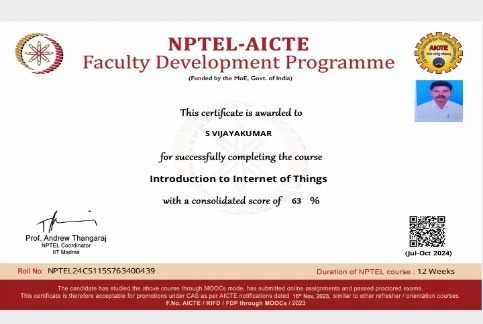 | 16 | S.Vijayakumar | Assistant Professor | Applied Electronics |