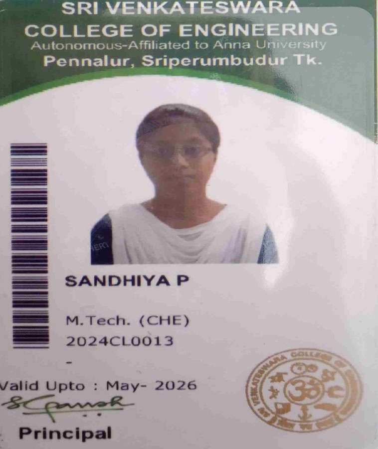 M.Tech.,Sri Venkateswara College of Engineering, Sriperumbudur, Chennai.View