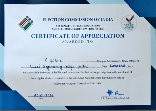 | Ajmal Thahseen III CYS –‘A’ | Participated in Regional Finals of ICT Academy Youth Talk- Tamil Nadu. | PEC & 01.10.2024 | ICT Academy Youth Talk |