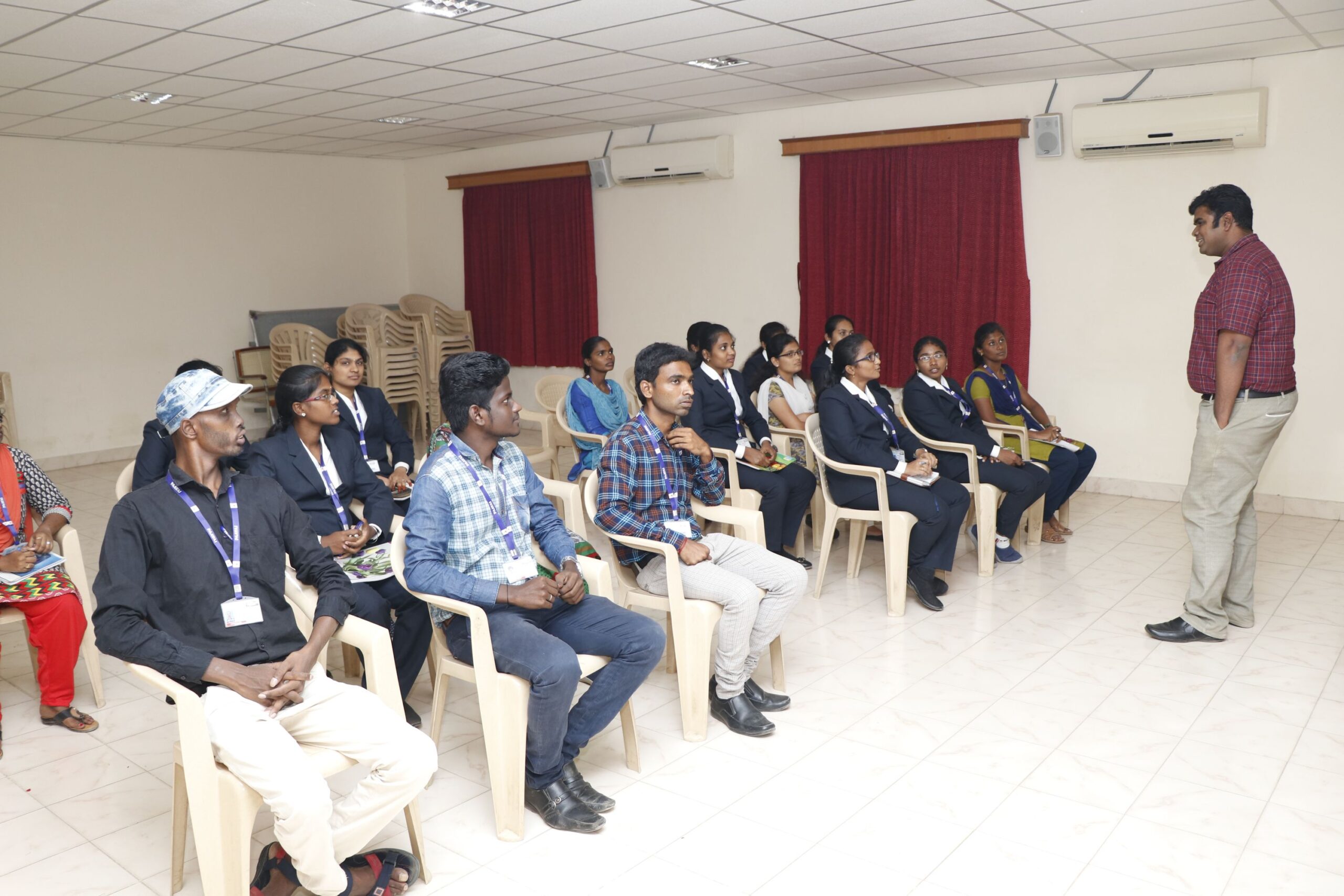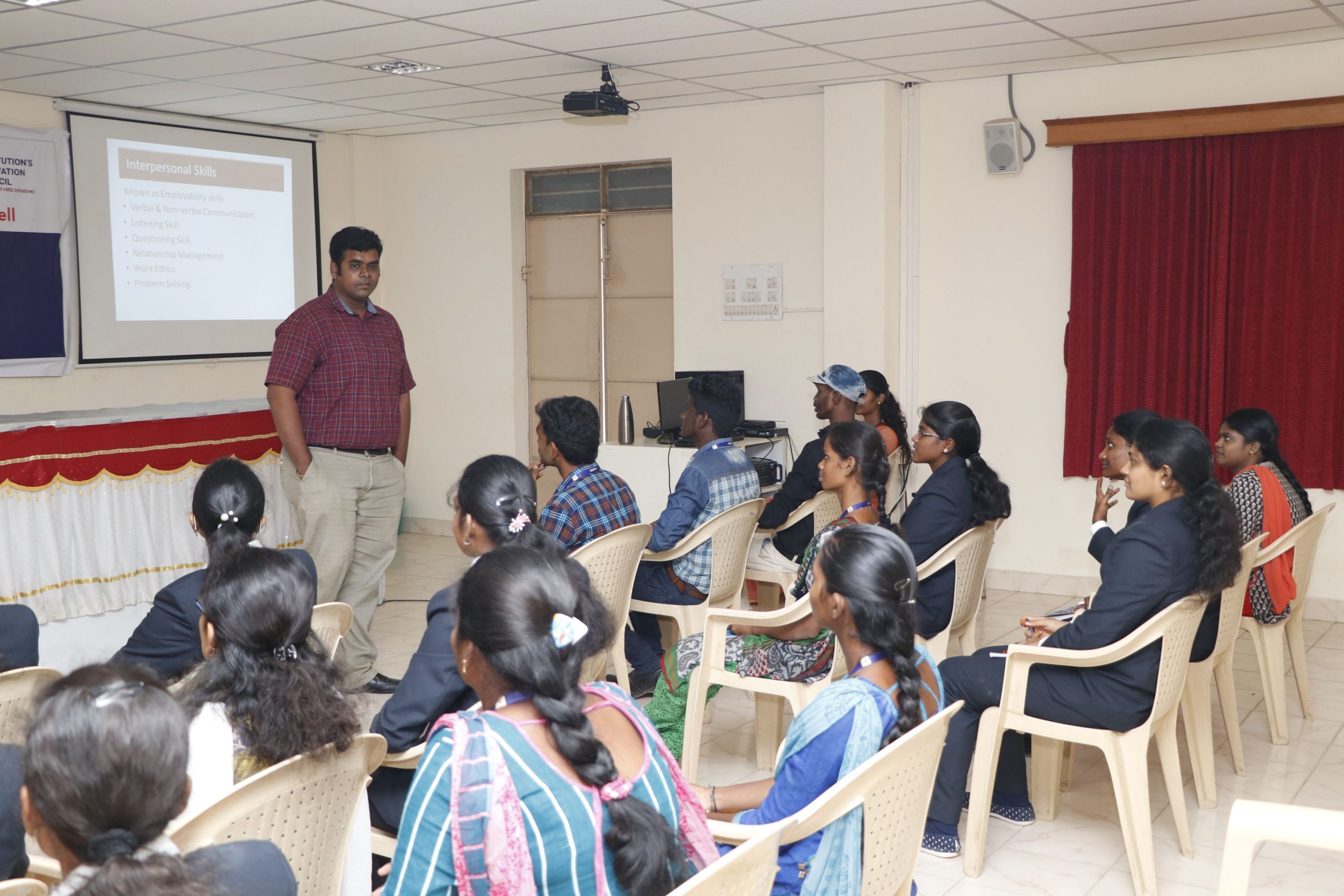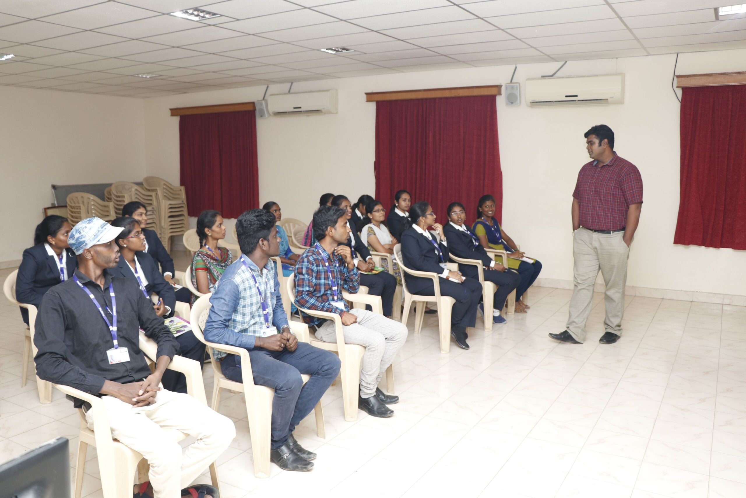 A guest lecture was organised for MBA students by the Department of Management Studies on 13th March 2019.Mr. S.Pradeep Kumar, Admission Officer of Paavai Vidhyaashramam delivered a guest lecture on “Skill Set for Management Executives”. Ms.V.Swati student of MBA delivered the Welcome address followed by Ms.S.Nandhini Devi introduction of guest for the day. The session was further taken over by Mr.S.Pradeep Kumar B.E, M.B.A, had a interactive session with the students regarding- Why MBA? Soft Skills needed & importance, Techniques to prepare a resume, How to face the interview?,etc. The session was really captivating & gave lot of interesting inputs to the students to enhance & enrich themselves in the future to be an outstanding Manager. Finally vote of thanks was delivered by Ms.V.Swati, Student of MBA.