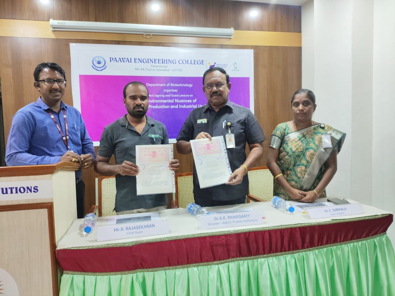 During the event, Paavai Engineering College and Green Connect Resource Management Solutions signed a Memorandum of Understanding (MoU) to promote academic–industry collaboration.