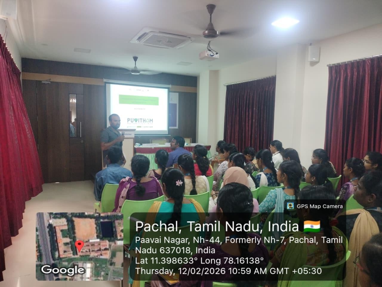 The Chief Guest Introduction was given by B. Mithralekha (III Year BT). The Chief Guest, Mr. R. Rajasekaran, Production Manager, Green Connect Resource Management Solutions and Puvitham Pvt. Ltd., delivered an insightful lecture on biogas production and its industrial applications.