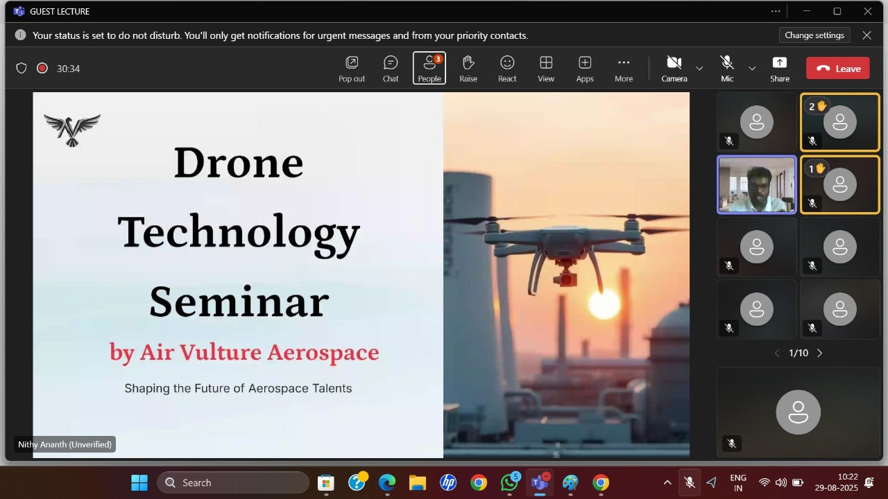 The session was highly interactive, with students engaging in Q&A discussions and clarifying their doubts about UAV autonomy, AI algorithms, and emerging aerospace technologies.