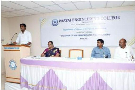| 1 | 09.05.23 | Guest Lecture | Mr.Rajkumar Kalaimani, Software Engineer, Product and Platform, Chennai. | Evoluation of Web Designing and Its Applications | View |