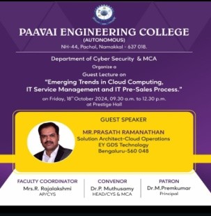 | 5 | 18.10.24 | Guest Lecture | Mr.C.Prasath Ramanathan Solution Architect Cloud Operations EY GDS technology | Emerging Trends in Cloud Computing, IT Service Management and IT Pre-Sales Process | View |