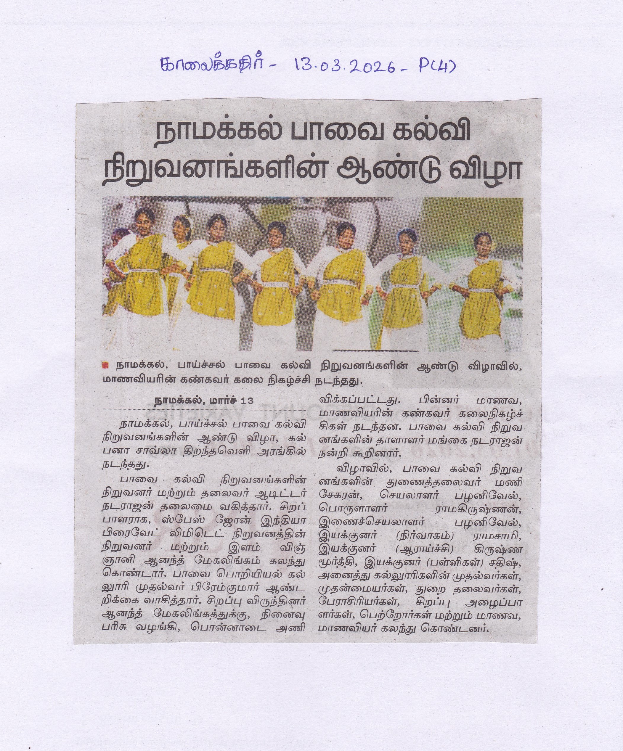 Features of Paavai Institutions