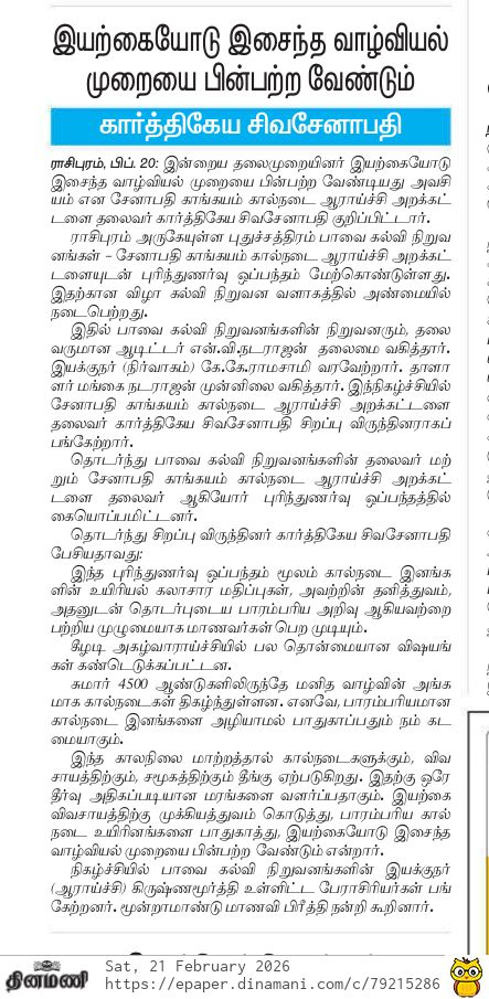 MoU Signed Between Paavai Educational Institutions and Senapathy Kangayam Cattle Research Foundation February 18, 2026