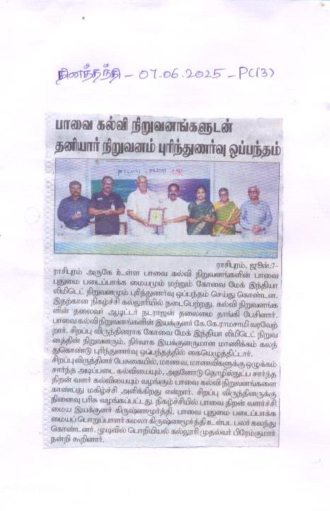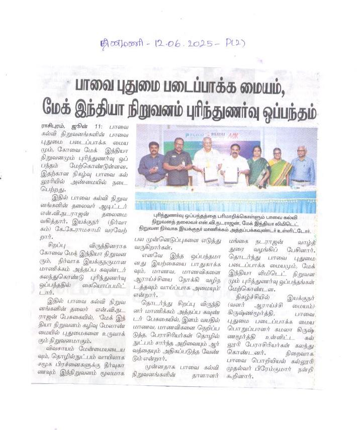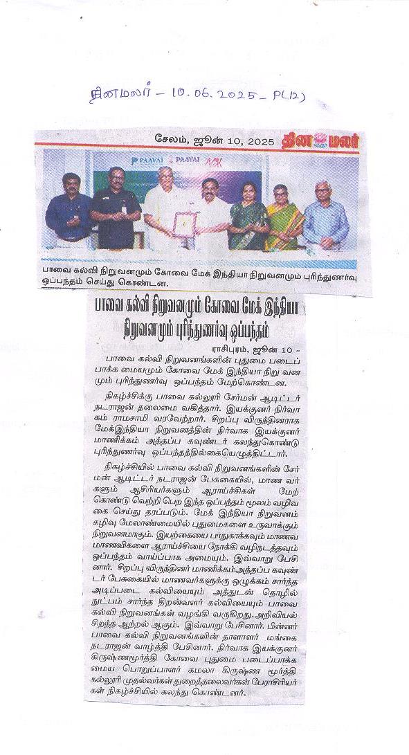 MoU Signed Between Paavai Innovation Forum and MAK India Ltd.