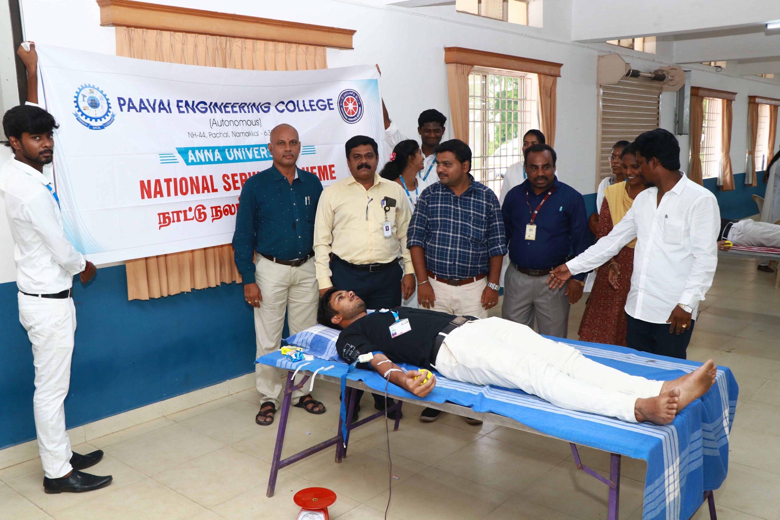National Service Scheme, Paavai Engineering College and Sree Jayam Ortho and Multi Speciality Hospital, Mallur, Salem jointly organized the Blood Donation Camp on 17.05.24 on the college premises. Dr.Frook, IS Nursing Home Hospital, Trichy, Dr.M.Premkumar, Principal, Paavai Engineering College and Mr.C.Rathnakumar, NSS Programme Officer, Paavai Engineering College were present and they encouraged the students to donate blood.