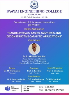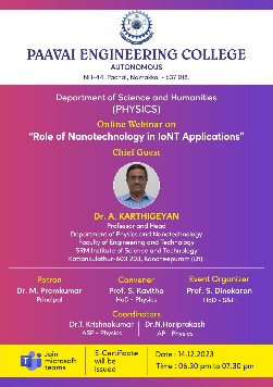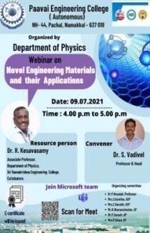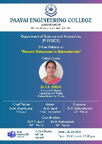 | 7 | Dr.S.Rathinavel | Dr.S.Vadivel Professor Department of Physics R&D Centre Paavai Engineering College | The studies of clad removed fibre optic gas sensor based on mnco2o4, mgco2o4, feco2o4 and nico2o4 nanoparticles as high performance ethanol and acetone gas detection at room temperature using hydrothermal method | 2017 | 2021 |