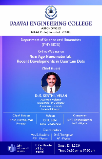 | 2 | Dr.R.Senthil Kumar | Dr.A. Panneerselvam Professor Department of Physics R&D Centre Paavai Engineering College | Qualitative and Quantitative approaches on air suspended particles in Tamilnadu, India | 2013 | 2016 |