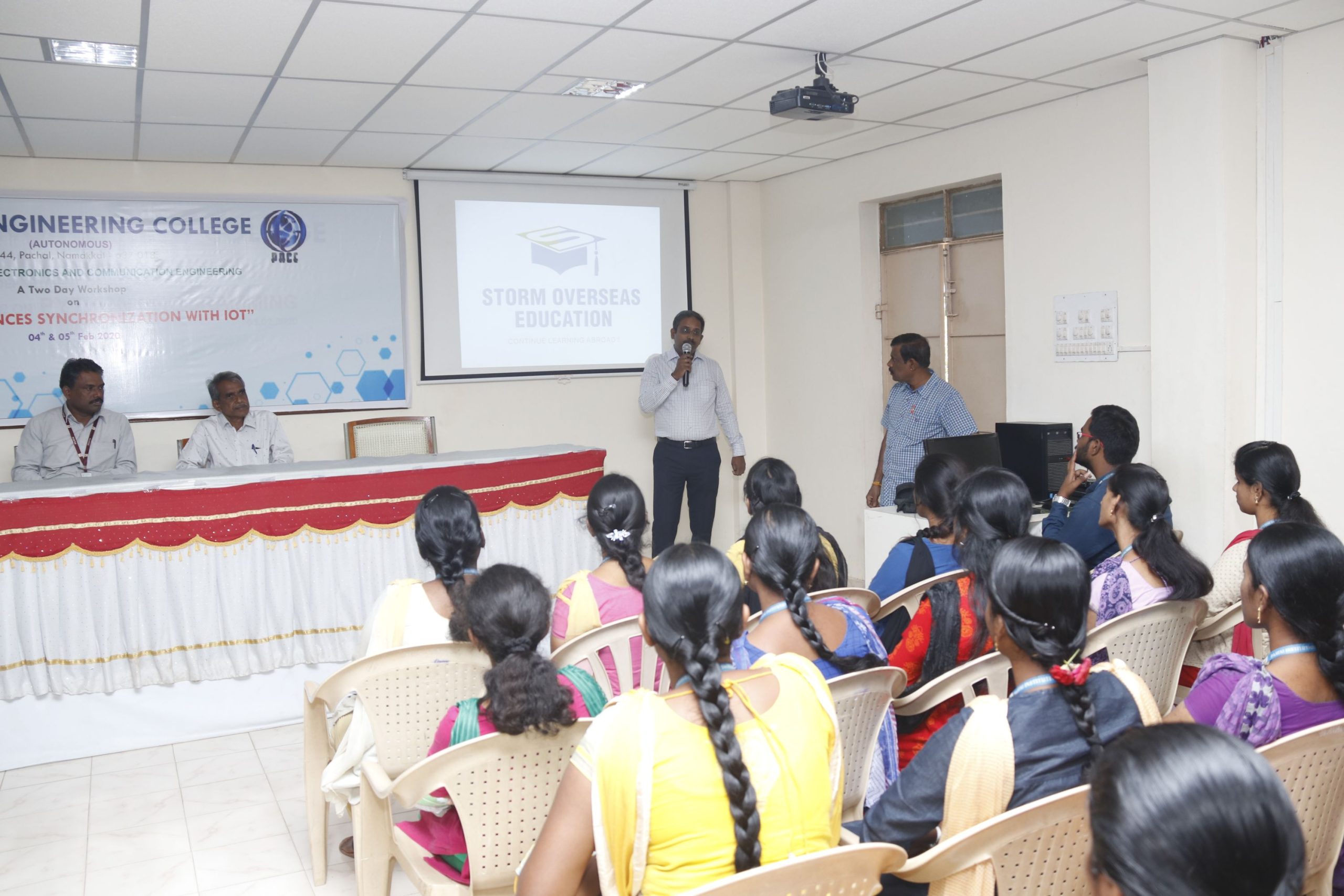 PAAVAI ENGINEERING COLLEGE Conducted a Seminar on Higher studies in Foreign Universities by Mr.Ganesh Balusu from Strom Educational Consultant Group Pvt Ltd, Chennai to the final year students. In his speech he specified about the survey sources of higher education at various countries like Australia, UK, Italy, Germany etc., Data Science, Telecommunication and Networking, Bio medical are some of the leading courses available at overseas and he insisted the importance of IELTS, PTE & GRE aptitude exams score to get scholarship for Higher studies in the foreign universities. He stated the required eligibility criteria to pursue higher education in abroad. The students interacted with the resource person and got their doubts clarified about higher studies in foreign universities.