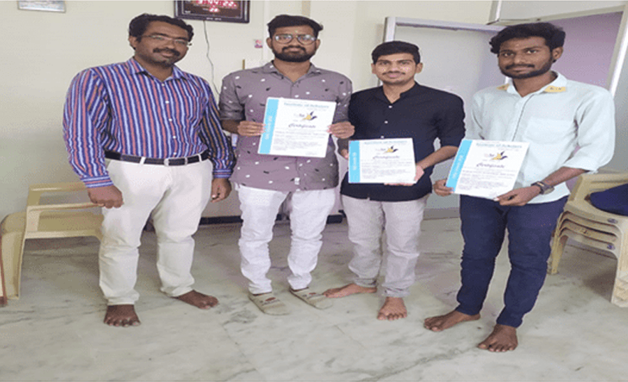 Our Chemical department students B Kishore Kumar (Final Chemical), A Suresh Babu (Final Chemical) and S .Sujith (Final Chemical) have got selected in the Winners of FAER – McAfee Scholar Awards Program : 2019-2020 for the project titled “ DYE SENSITIZED BLACKBERRY SOLAR CELL “. Their project has won Special prize with cash of Rs.25,000