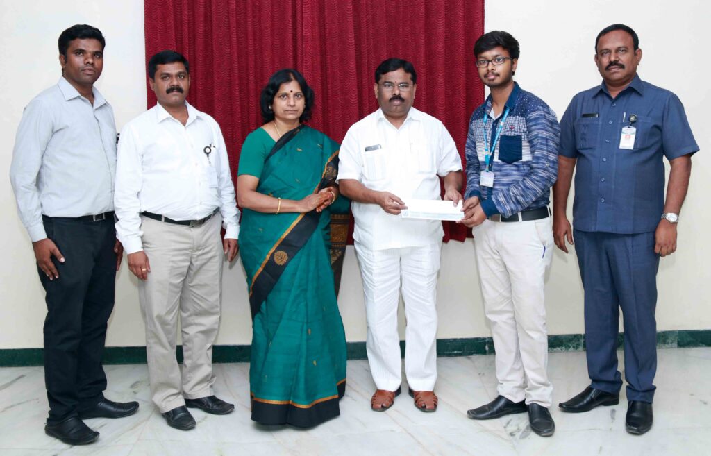 Mouli, S.MohammedZubair and S.Prathosh Kumar from final year has received Best Student Project of the year award from InSc – InSc Awards 2020, Bangalore. The project titled “Monitoring and Controlling of Turbine Parameters Using Microcontrollers under the guidance of Mr.S.Loganathan, Assistant Professor,ECE