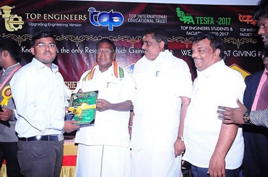 M.Abubackkar Shithik of Information Technology received Best Achiever Award from the Top Engineers-Student and Faculty Award category.