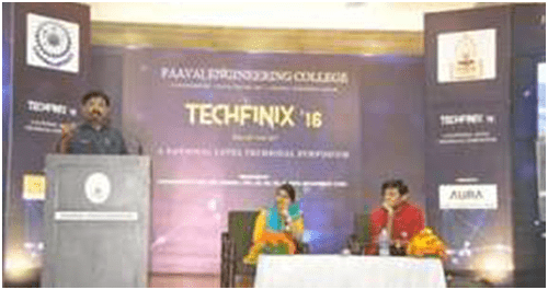 The society of all department engineers of Aero, Agri, Chemical, Civil, CSE, IT, ECE, EEE, Mechanical, Mechatronics, MBA and MCA conducted the national-level technical symposium ‘TECHFINIX’16 on 29.09.16. This symposium was inaugurated by Mr. M.Siva Kumar, CEO, ICT Academy of Tamil Nadu, Chennai. He said that, the students with skills would have ample job opportunities. He further elucidated the role played by such symposium in improving the soft skills and technical skill of the students.