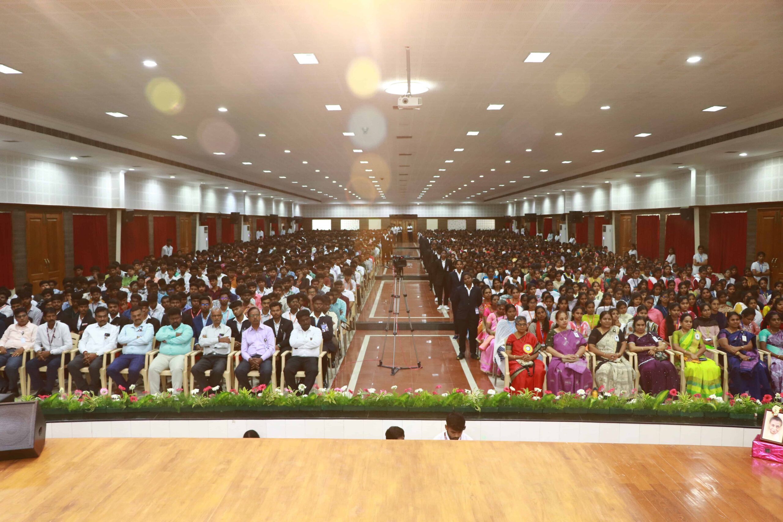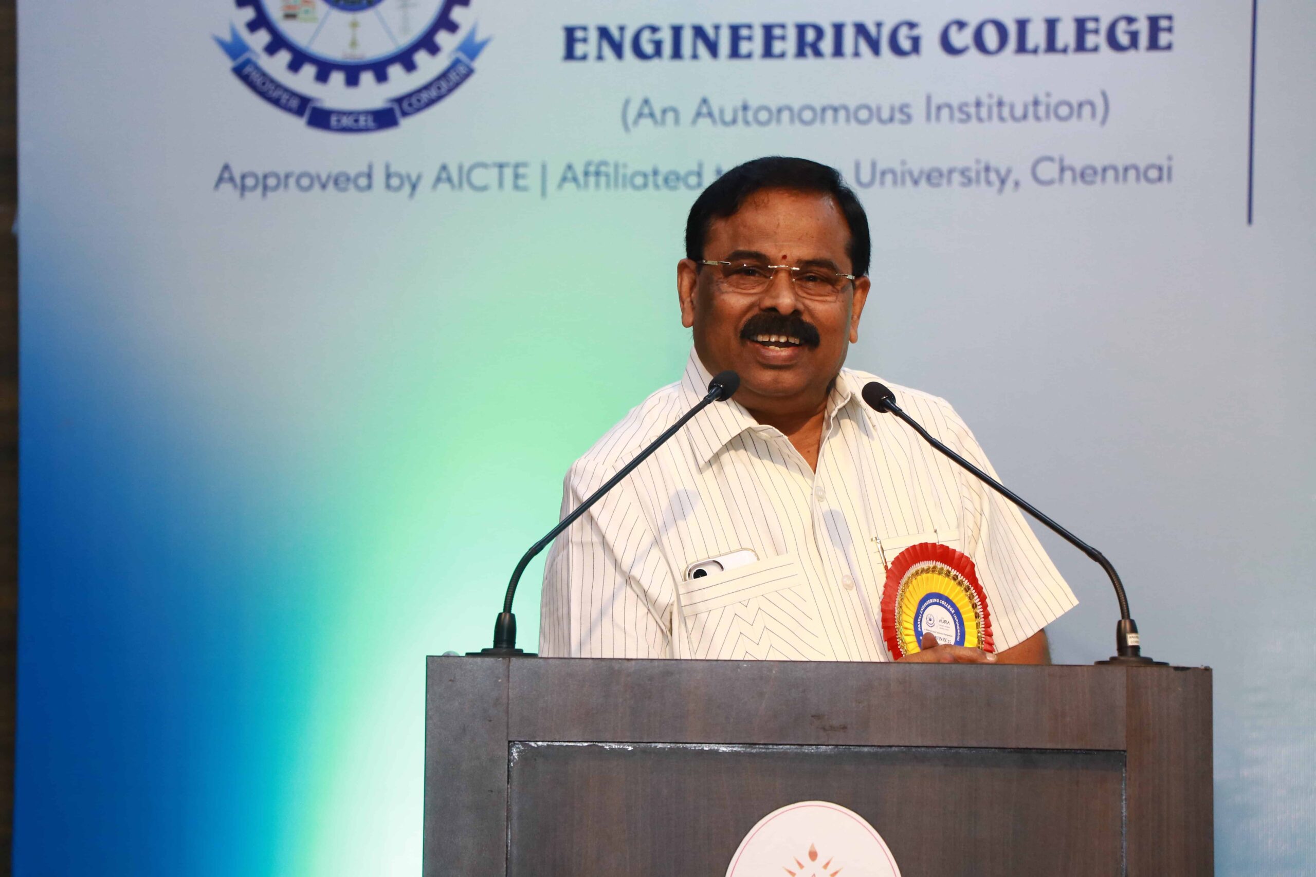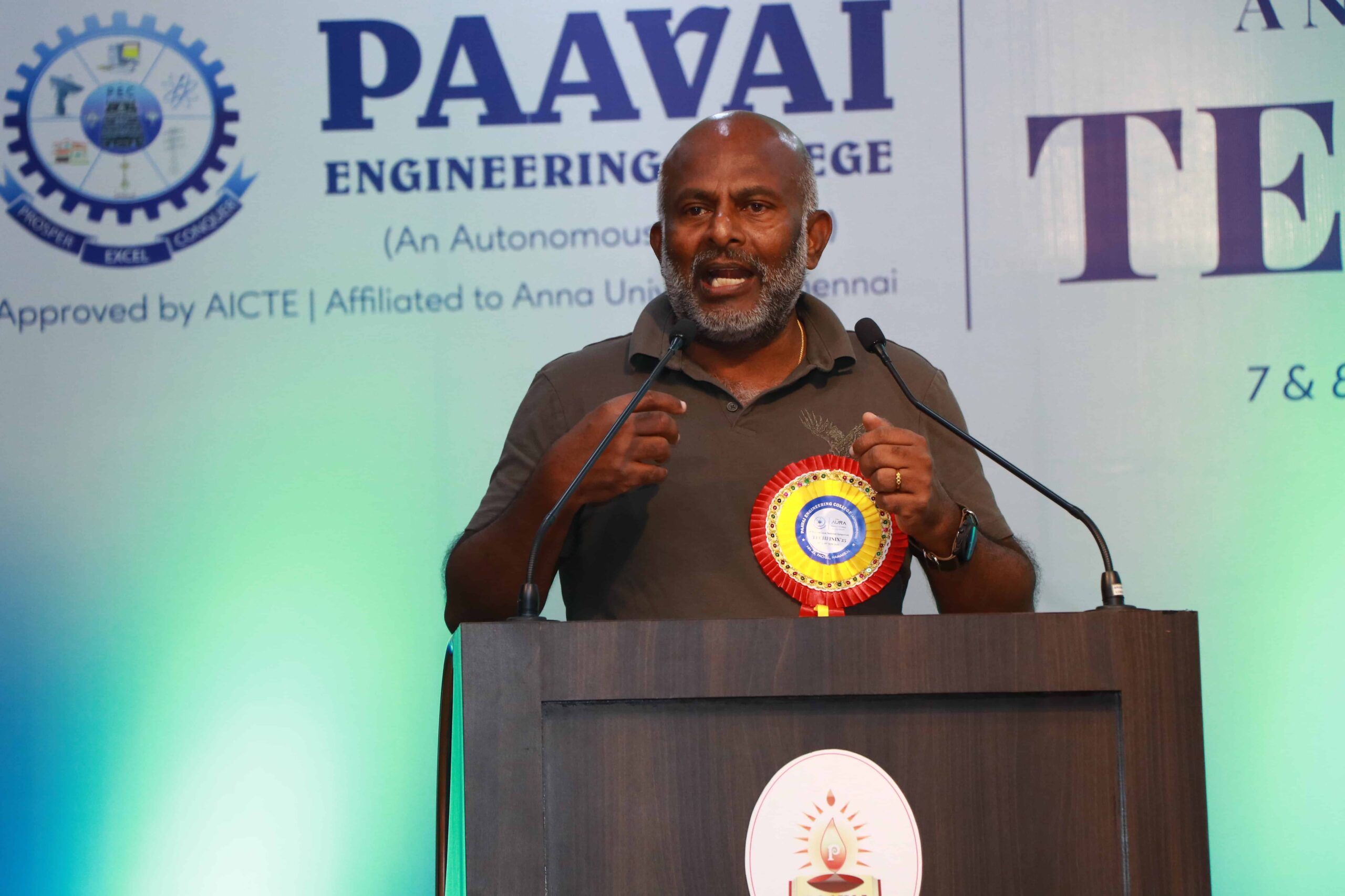 In his presidential address, Shri CA N. V. Natarajan, Chairman of Paavai Institutions, focused on five important values: education, practice, effort, hard work, and success. He emphasized the importance of setting big goals in life and shared his memorable experience of the late President Dr. A. P. J. Abdul Kalam’s visit to Paavai, quoting his inspiring words: “Think Big and Aim High.” He added that Paavai is a student-centric institution committed to the progress and growth of its students. He also encouraged students to watch TED Talks, build their inner confidence, and expand their knowledge.