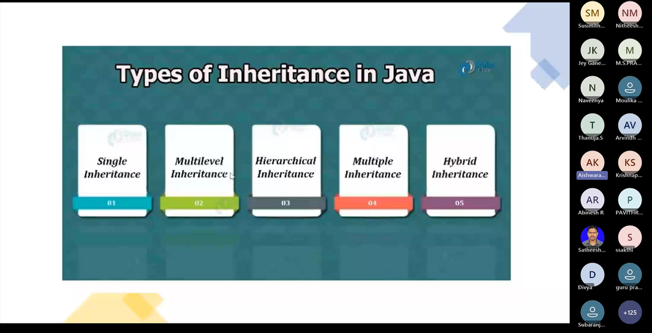 Mr.S.Satheeshkumar, AP/ECE and Mr.R.Logarasu AP(Sr.Grade)/ECE were the faculty coordinators. Dr.R.MohanaPriya, HoD, ECE, faculty members of ECE and around 160 students attended the online Guest Lecture. Student’s feedback indicated that it was very helpful for their upcoming placement drives and it has made them feel free to study Java in an easier way. Finally, third-year ECE student M.Sivaranjana gave the vote of thanks
