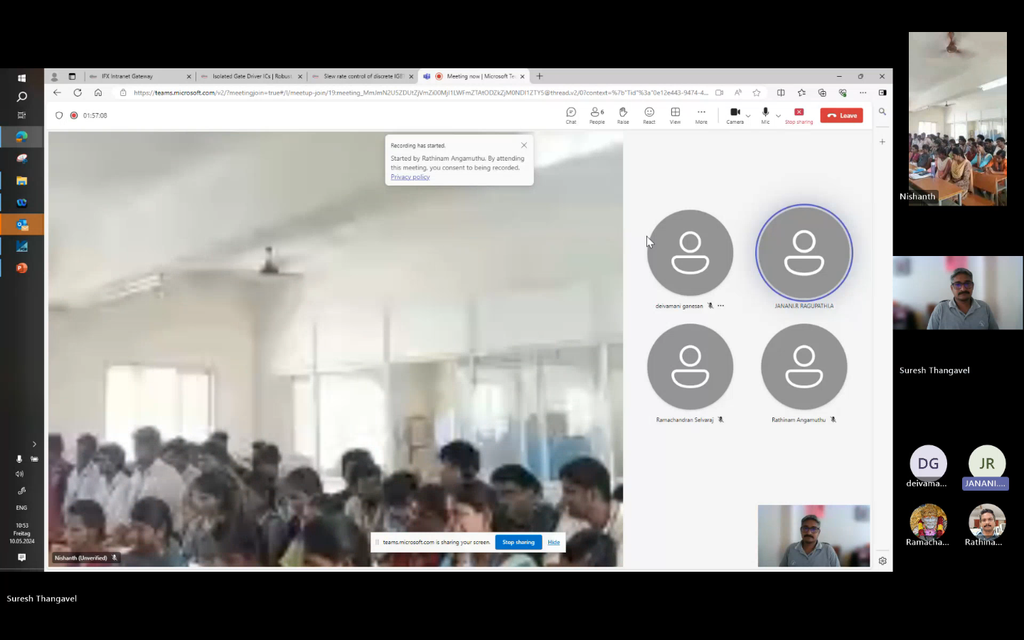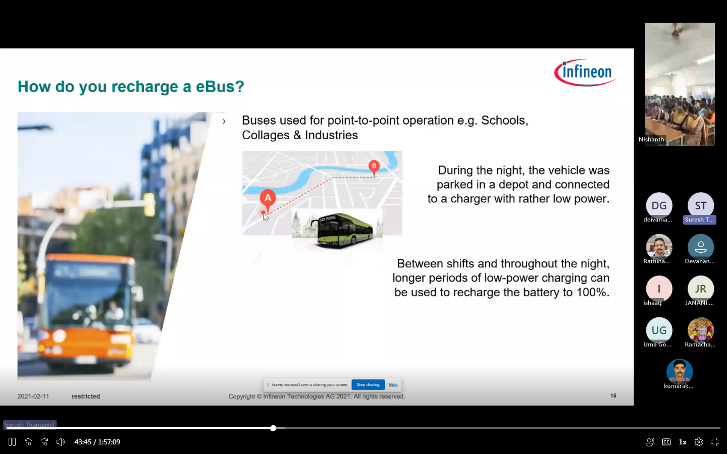 The Department of Electrical and Electronics Engineering of Paavai Engineering College organized an Online Guest Lecture on “Electric Transportation and its Fast Charging Solution” on 10 May, 2024. Er. Suresh Thangavel, Global Application Manager, Infineon Technologies AG Warstein, Germany was the resource person. The welcome address was given by S.Nathiya, 3rd year EEE and Chief Guest introduction given by A.Nisha, 3rd year EEE.