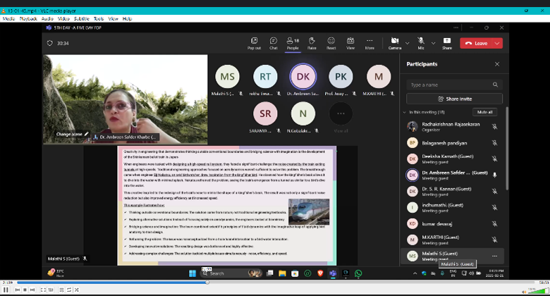 - Day 5 (21.02.25): Dr. Ambreen Safder Kharbe, Associate Professor at the College of Language and Translation, Najran University, KSA, addressed “The Art of Thinking: Using Literature to Cultivate Creativity in Engineering.” She emphasized the need for creativity in engineering and illustrated how literary devices can be applied in an engineering context.