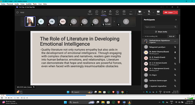 - Day 3 (19.02.25): Ambri Sharma, Assistant Professor at Asian Law College, presented on “Nurturing Emotional Intelligence through Literature in Engineering Students.” She explained the components of emotional intelligence and its key aspects in engineering education.