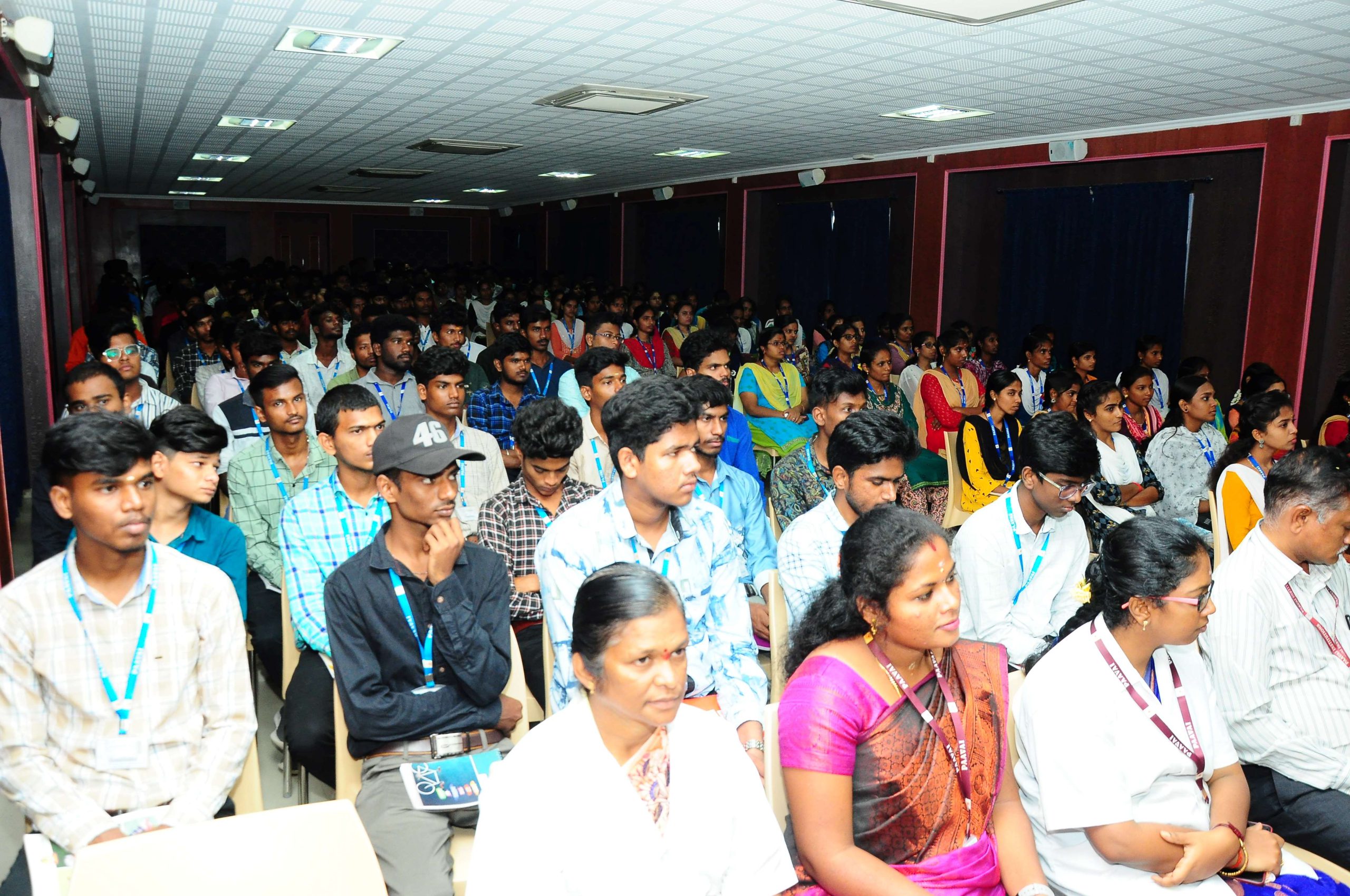 The alumni speaker, Mr. A. Praveen Kumar, in his keynote, addressed the students to be well versed in current trends of AI tools and how to build resumes, so that they could update their resumes to the latest model in their respective fields. He gave a detailed speech on Self-Motivation, Networking, Internships, Part-Time Jobs, Skill Development and Resume Building. He also narrated the Agile Methodology, Interview Preparation, Personality Development and the Process of Web Development to showcase our achievements, skills and experiences via a live online presence.