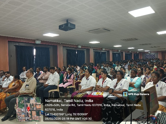 The Department of Pharmaceutical Technology, in association with Pharma technical association and youth read cross of the institution has conducted an Awareness Talk on “World cancer Day” on 05.02.2025 (Wednesday) at JRD TATA Hall from 03:00PM to 04:30PM. Prior to this talk session a badge distribution was organized by the Pharmaceutical Technology department on 04.02.2024 and the badges were distributed for faculty members, Principals, Deans, Admin, Correspondent and Chairman of the Paavai institutions. The welcome address was given by third year student, R.Kowsalya and the presidential address was given by Dr. A. Hepsi Rachel Chellarani followed the speaker introduction by P.Sobika, second year. The Students of Pharmaceutical Technology, Biotechnology, Biomedical Engineering, Food technology, Nursing and Pharmacy college of Paavai institutions attended the talk along with YRC volunteers. The resource person of the day was Dr.T.Paneerselvam, Surgical Oncologist, SKS Hospital, Salem created awareness among the students about cancer from the stage of diagnosis till post treatment . He insisted the student to share the details about Mamogram testing for women with their parents to prevent breast cancer. He also mentioned the important statement that cancer is non-contagious and importance of diagnosis at an early stage to prevent the loss of life. He stressed the fact that never believe the most common myths shared among the public and enriched the student’s knowledge about not to avoid even a single indication of the human biological changes unnoticed. The doctor enlisted the necessities of post check-up after eradication of cancer tumour and proving a moral support to patients via rehabilitation system. The current research trends of combinational therapy have supported in helping the maximal patients with long life span after proper treatment, stating this, he encouraged the students to understand the problem statement and concentrate from the ground work.